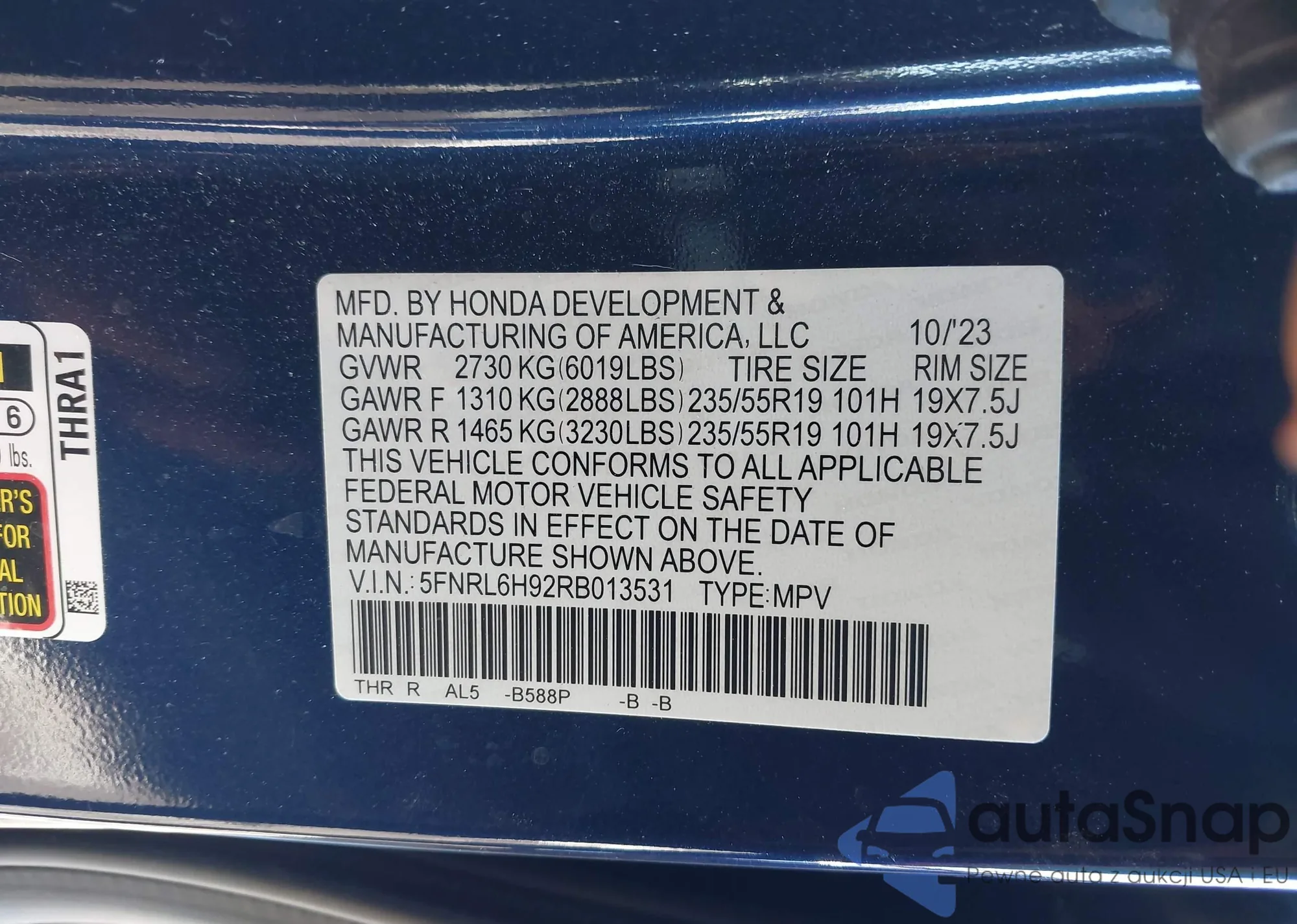 VIN: 5FNRL6H92RB013531