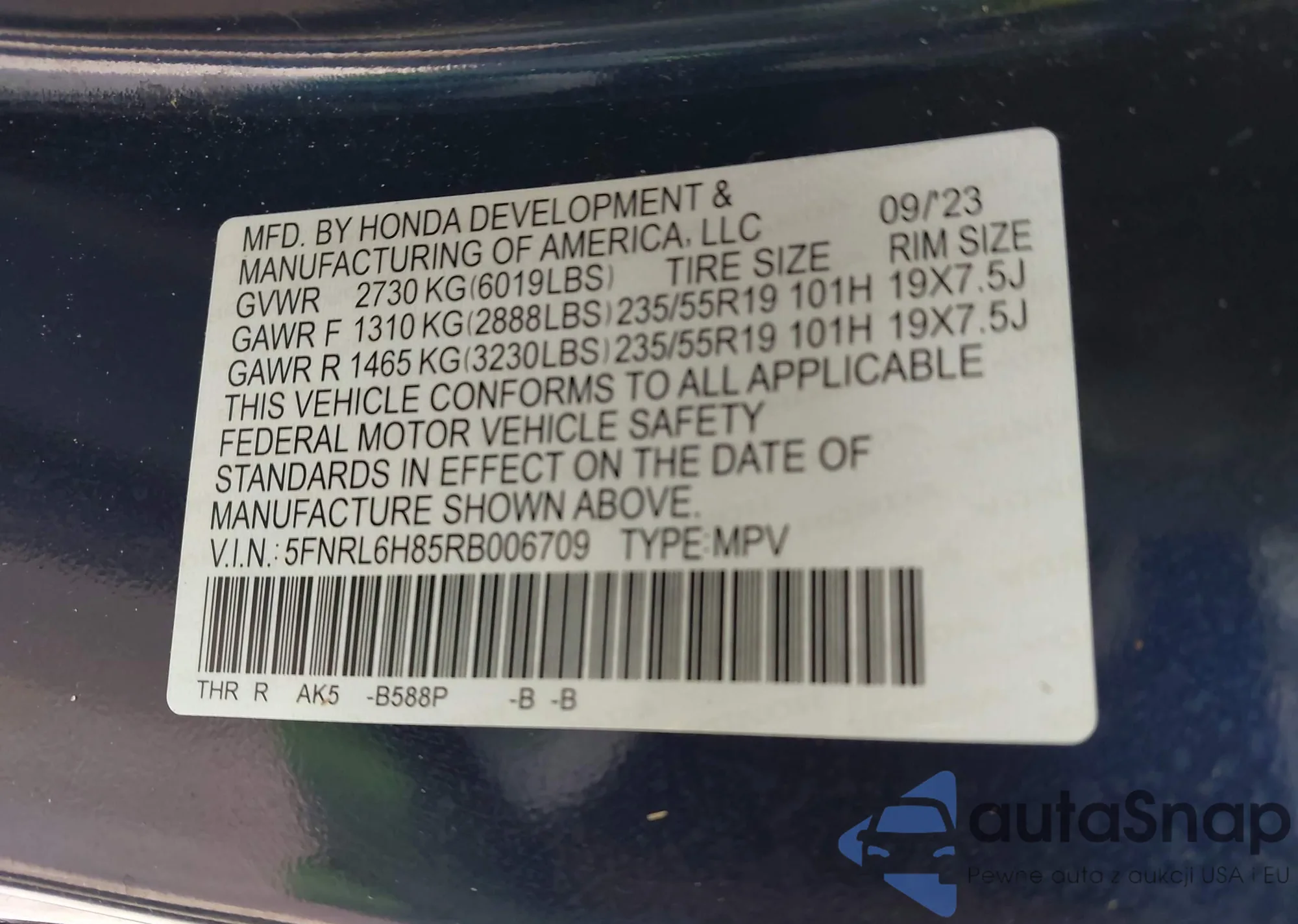 Автомобиль Honda Odyssey 2024 (VIN 5FNRL6H85RB006709) ранее не участвовал в торгах. Документы чистые, пробег соответствует или ниже среднего по рынку. Продаётся страховой компанией — рекомендуем покупку. Доставка в порт займет около 6–8 недель.