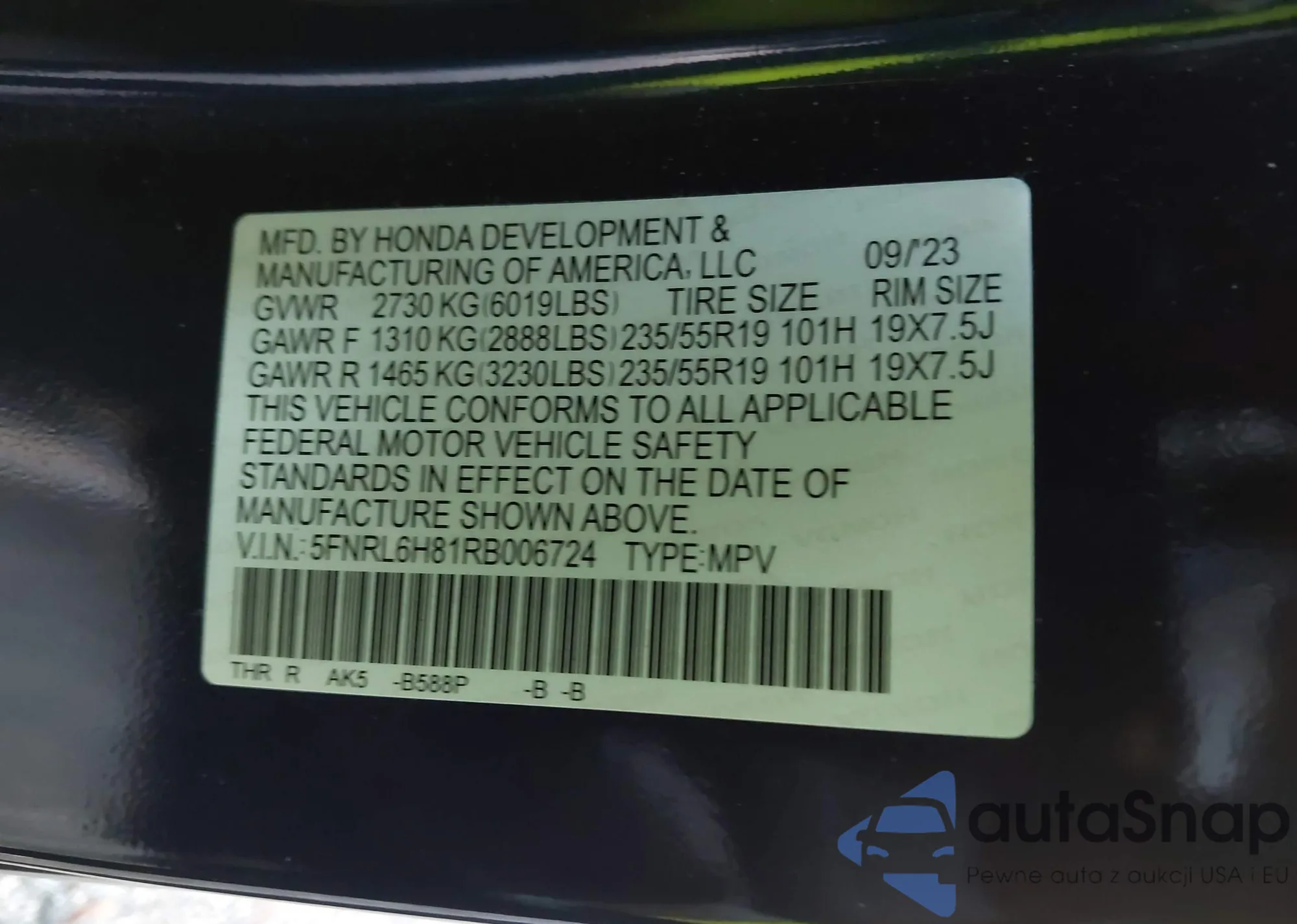 Автомобиль Honda Odyssey 2024 (VIN 5FNRL6H81RB006724) имеет документы, препятствующие регистрации. Могут возникнуть сложности при экспорте и регистрации. Обратитесь к экспертам AutaSnap для поиска альтернатив.