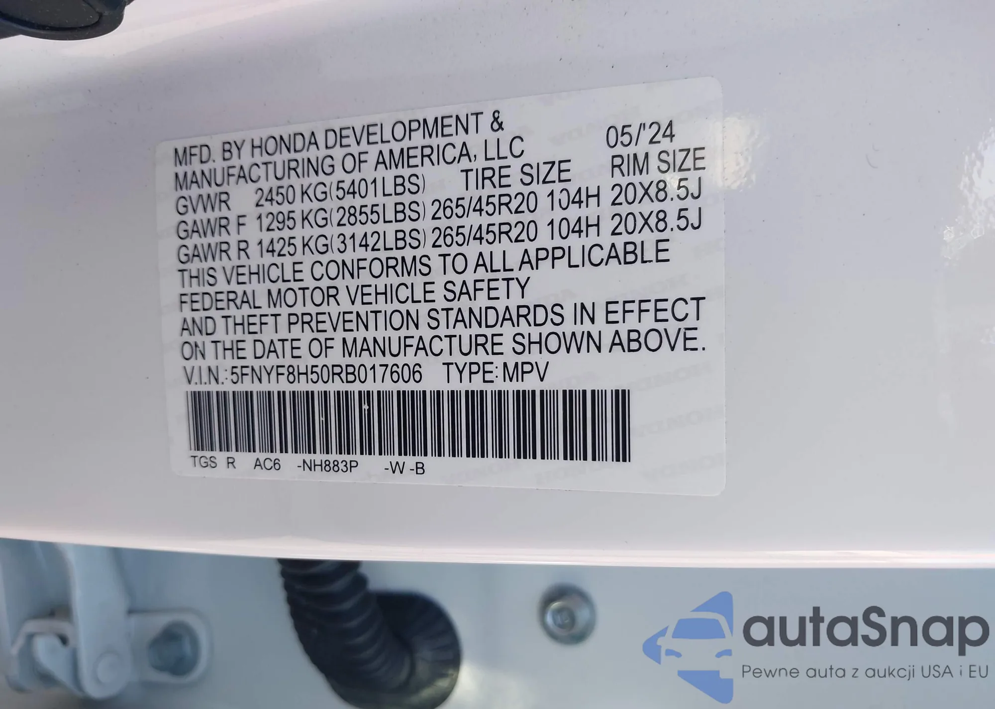 Автомобиль Honda Passport 2024 (VIN 5FNYF8H50RB017606) ранее не участвовал в торгах. Документы чистые, пробег соответствует или ниже среднего по рынку. Продаётся страховой компанией — рекомендуем покупку. Доставка в порт займет около 6–8 недель.