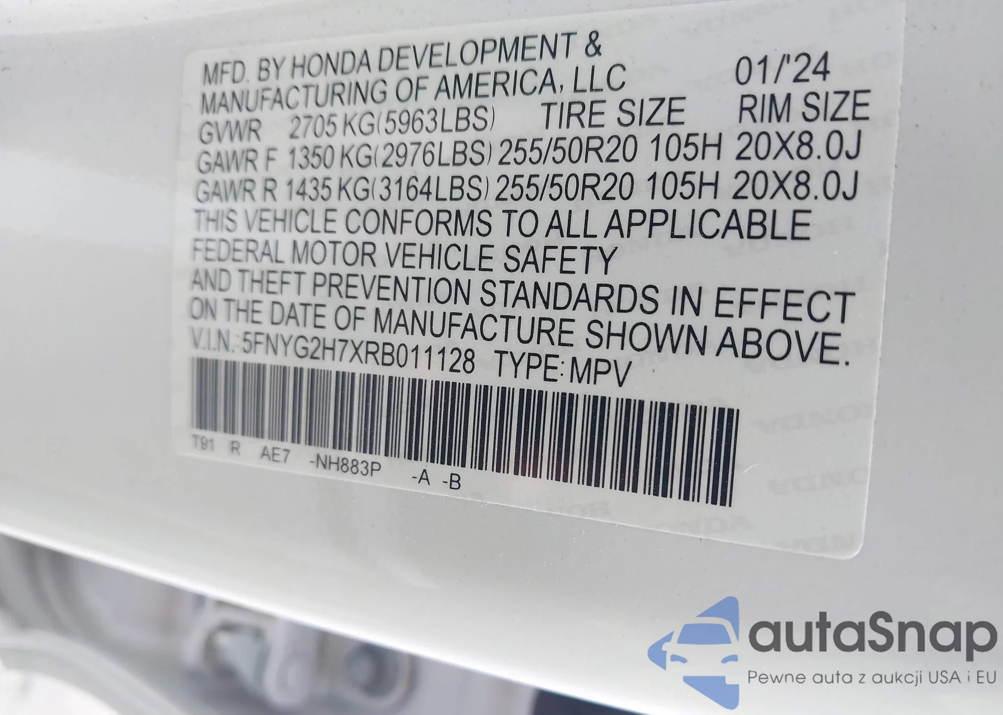 VIN: 5FNYG2H7XRB011128
