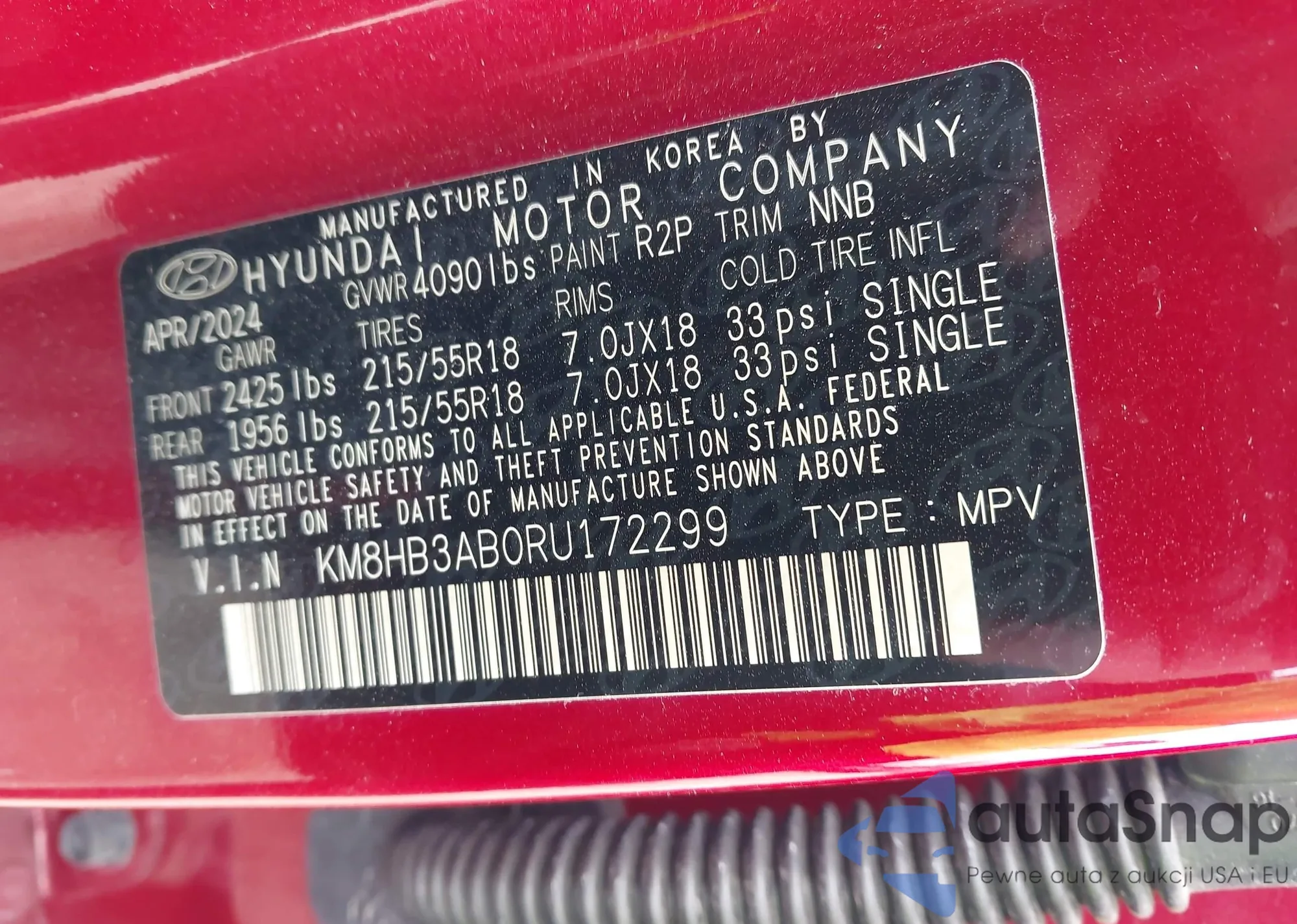 VIN: KM8HB3AB0RU172299
