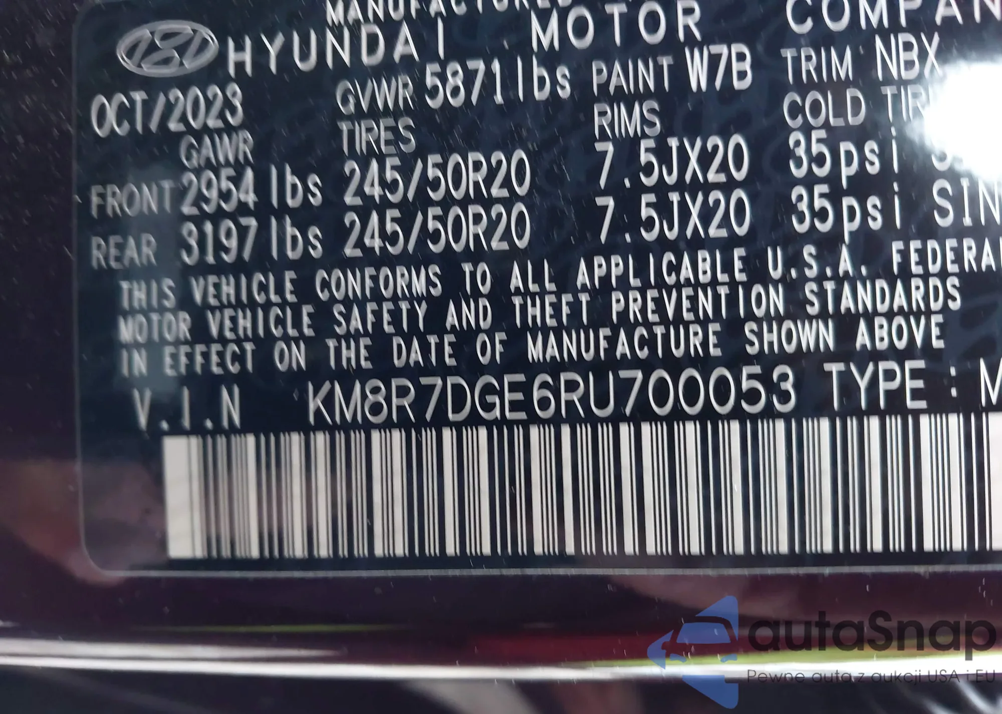 VIN: KM8R7DGE6RU700053