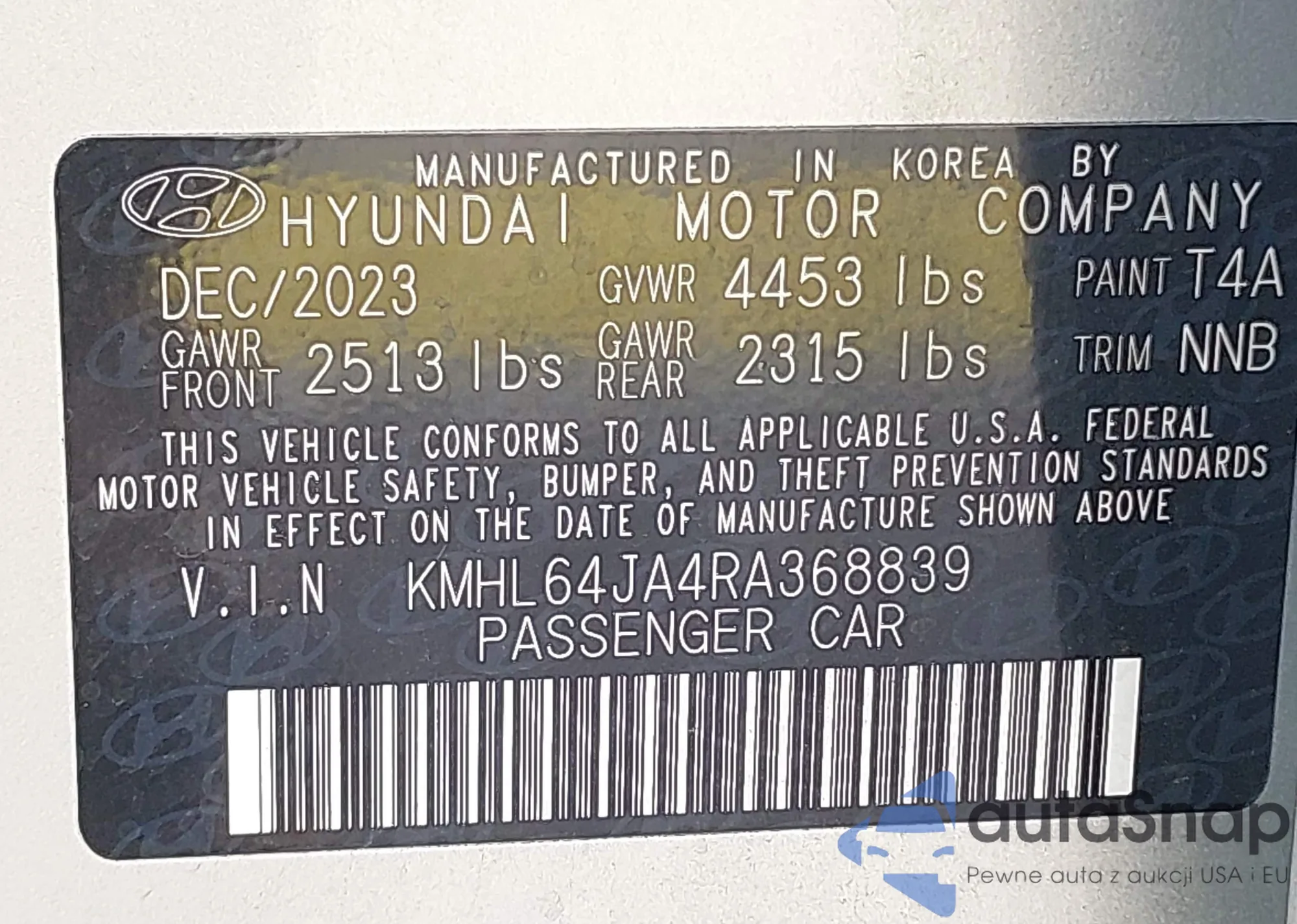 VIN: KMHL64JA4RA368839