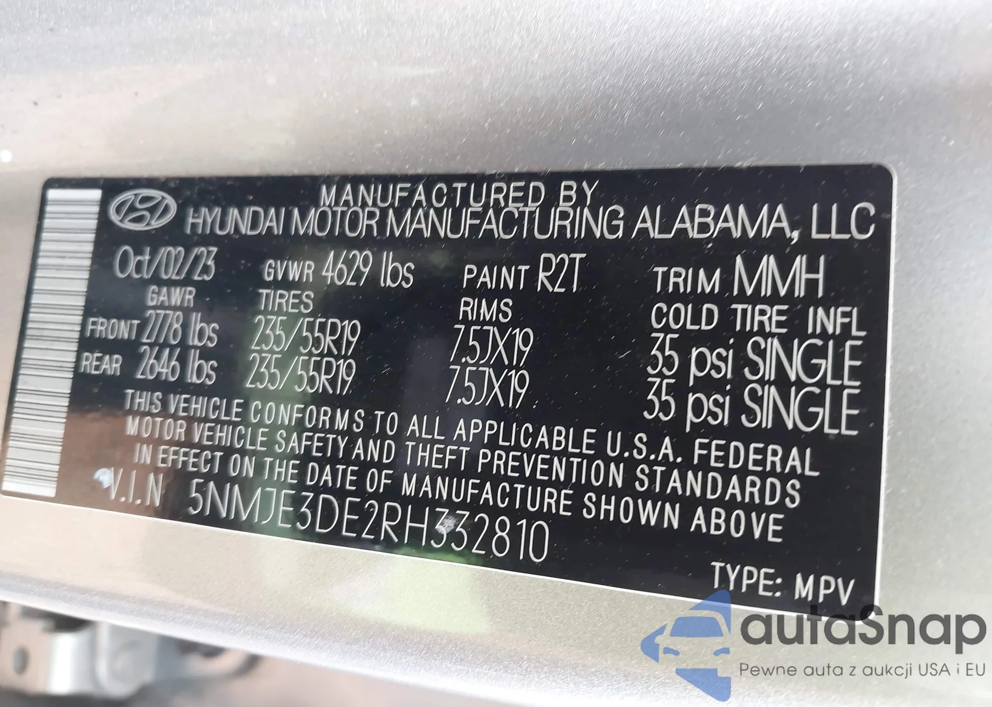 VIN: 5NMJE3DE2RH332810