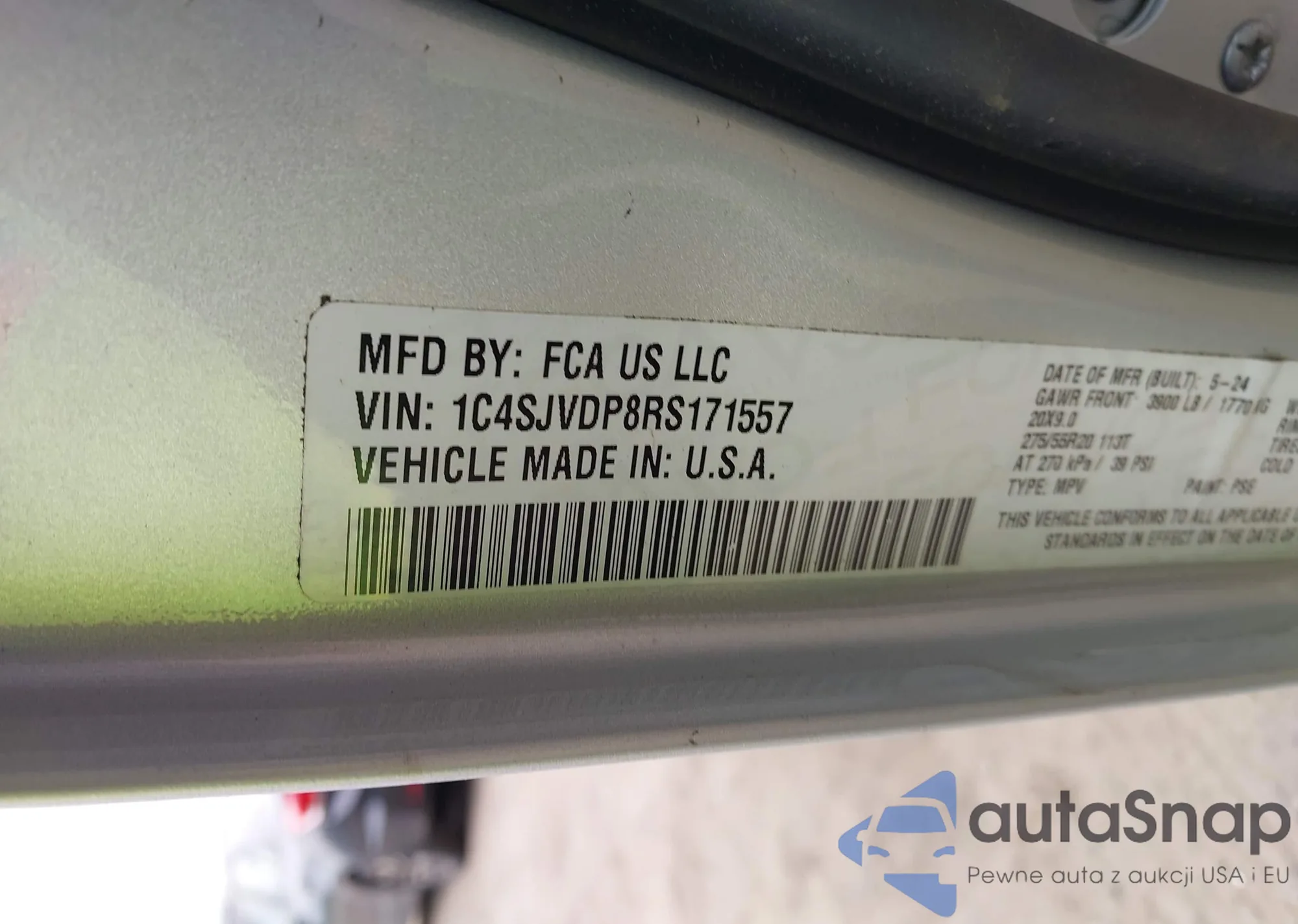 • VIN: 1C4SJVDP8RS171557