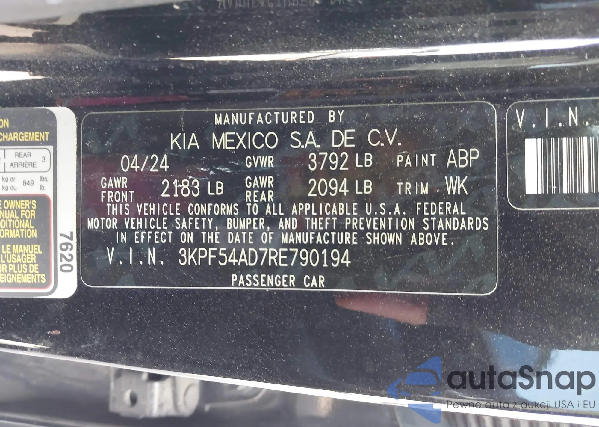 Автомобиль Kia Forte 2024 (VIN 3KPF54AD7RE790194) ранее не участвовал в торгах. Документы чистые, пробег соответствует или ниже среднего по рынку. Продаётся страховой компанией — рекомендуем покупку. Доставка в порт займет около 6–8 недель.