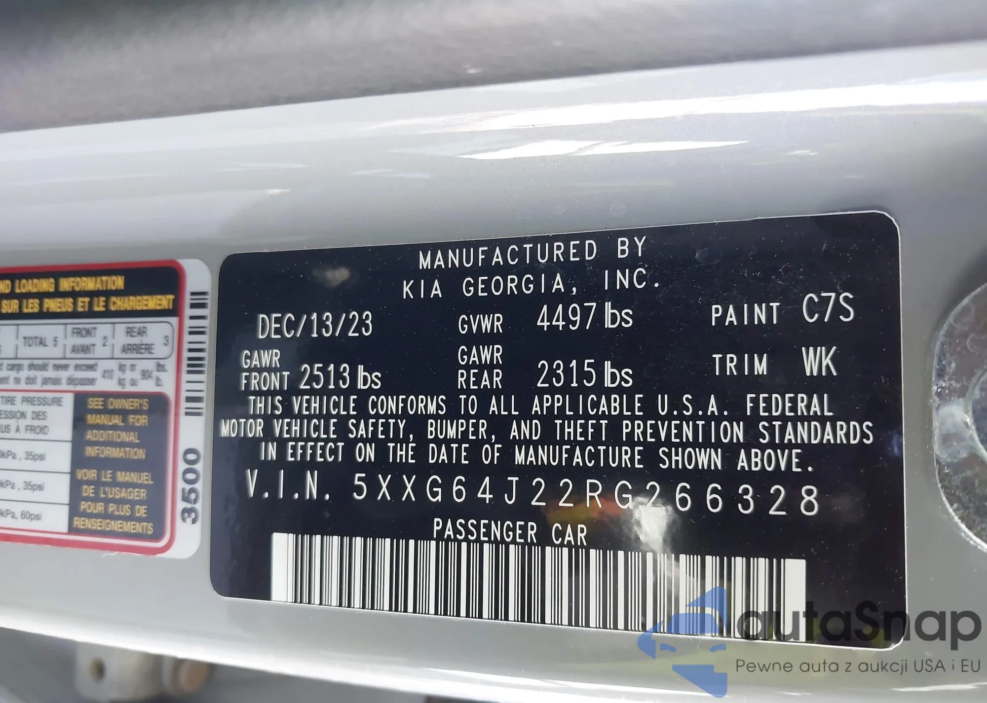 Автомобиль Kia K5 2024 (VIN 5XXG64J22RG266328) ранее не участвовал в торгах. Документы чистые, пробег соответствует или ниже среднего по рынку. Продаётся страховой компанией — рекомендуем покупку. Доставка в порт займет около 6–8 недель.