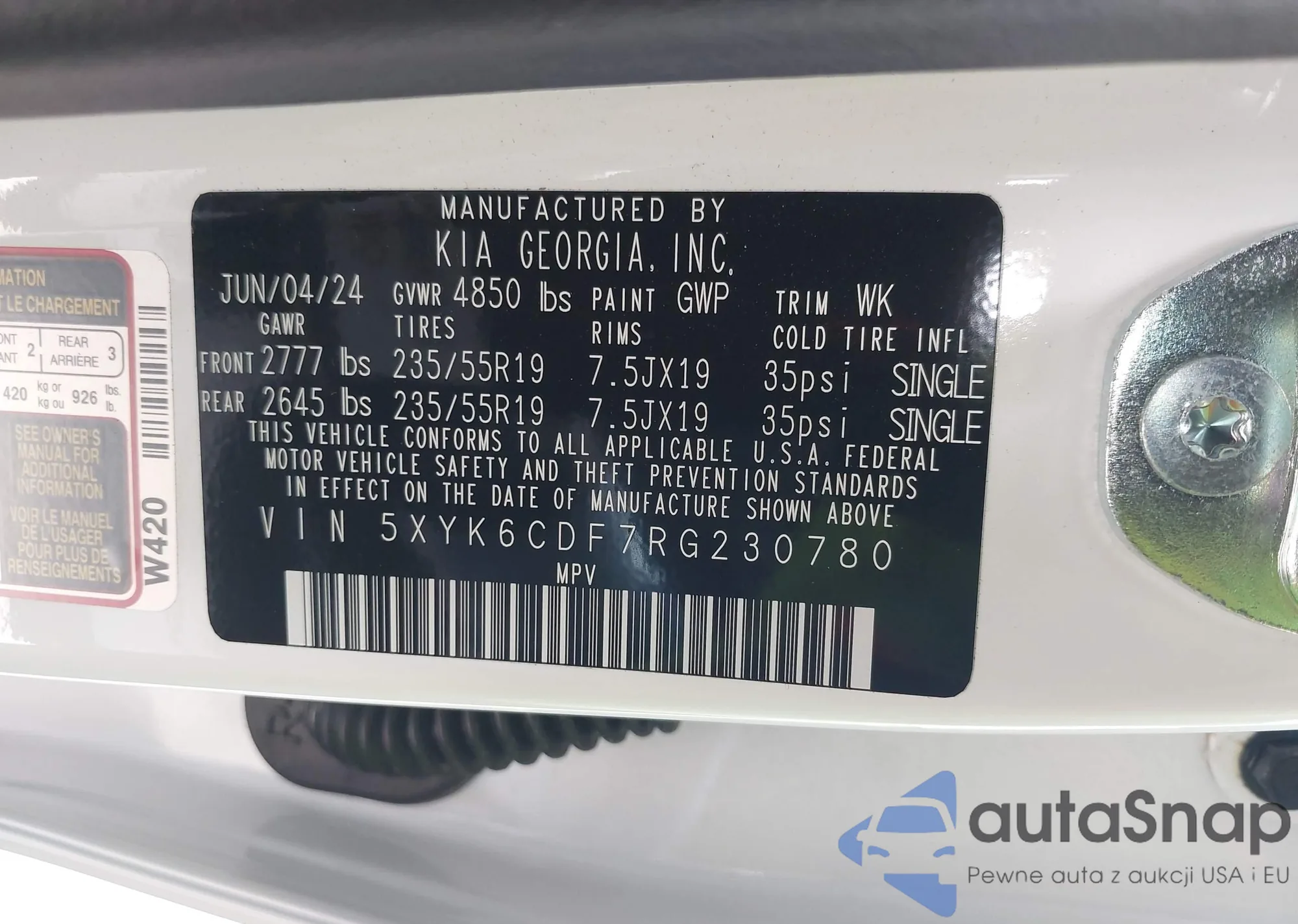 VIN: 5XYK6CDF7RG230780