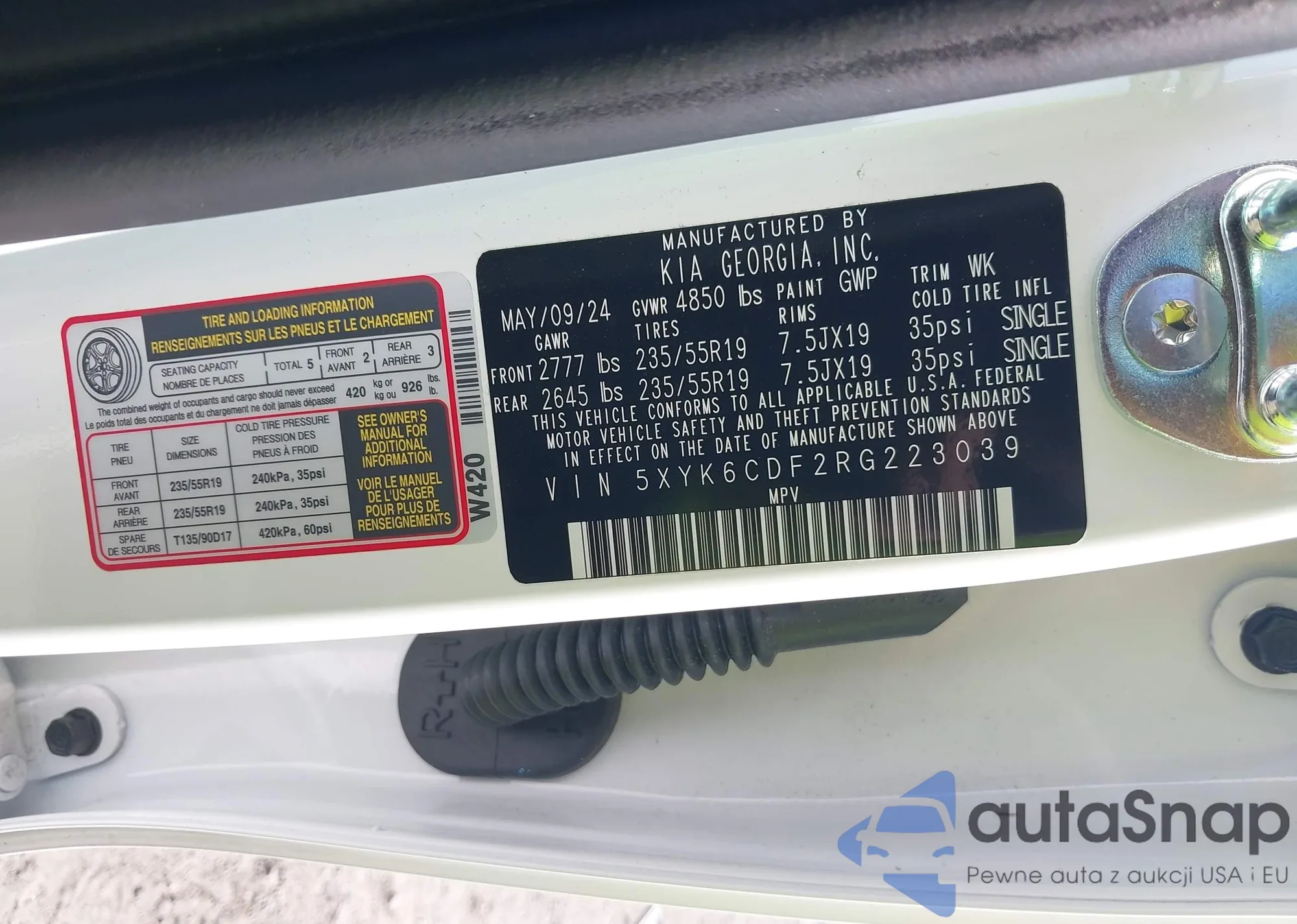 VIN: 5XYK6CDF2RG223039