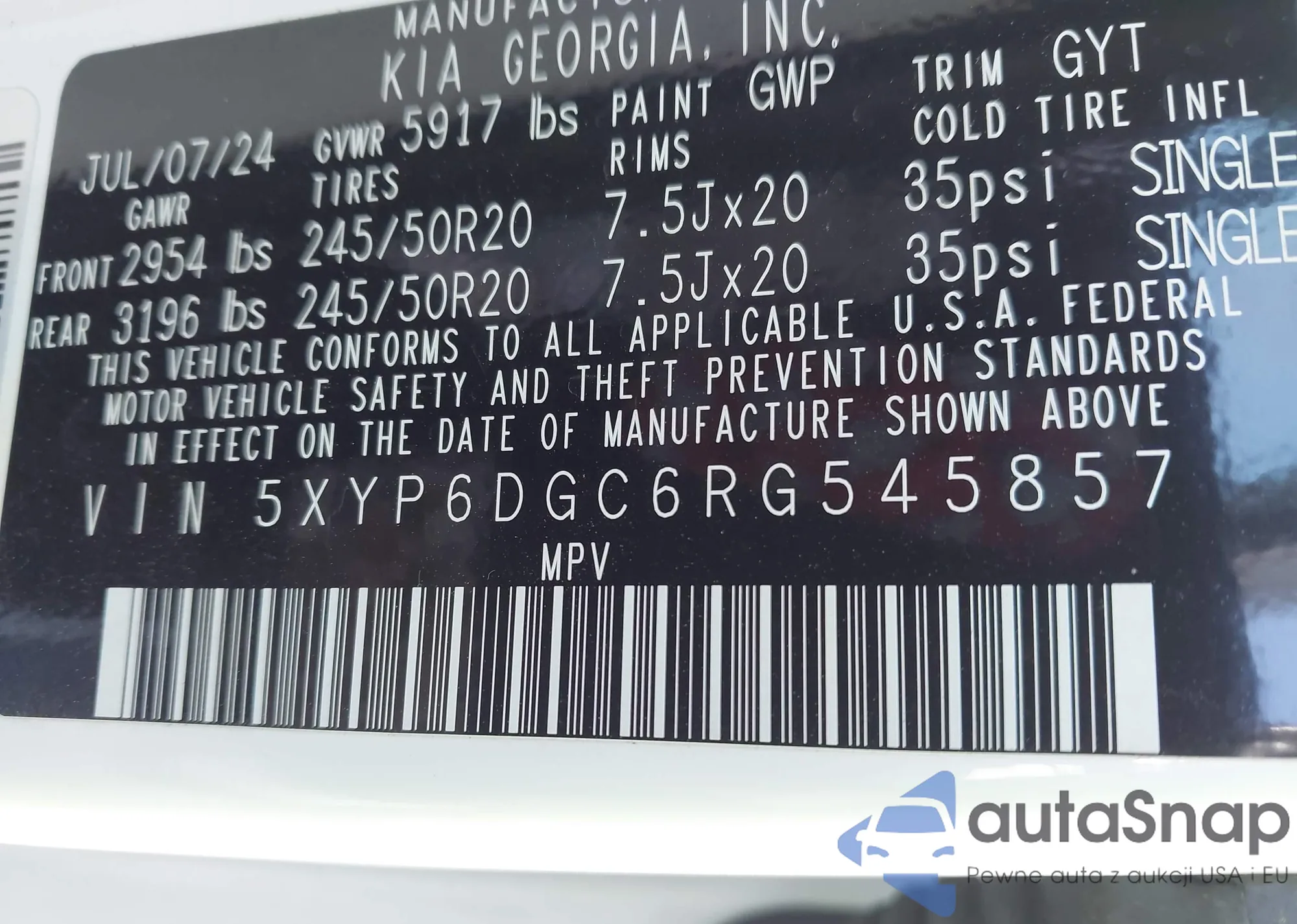 VIN: 5XYP6DGC6RG545857