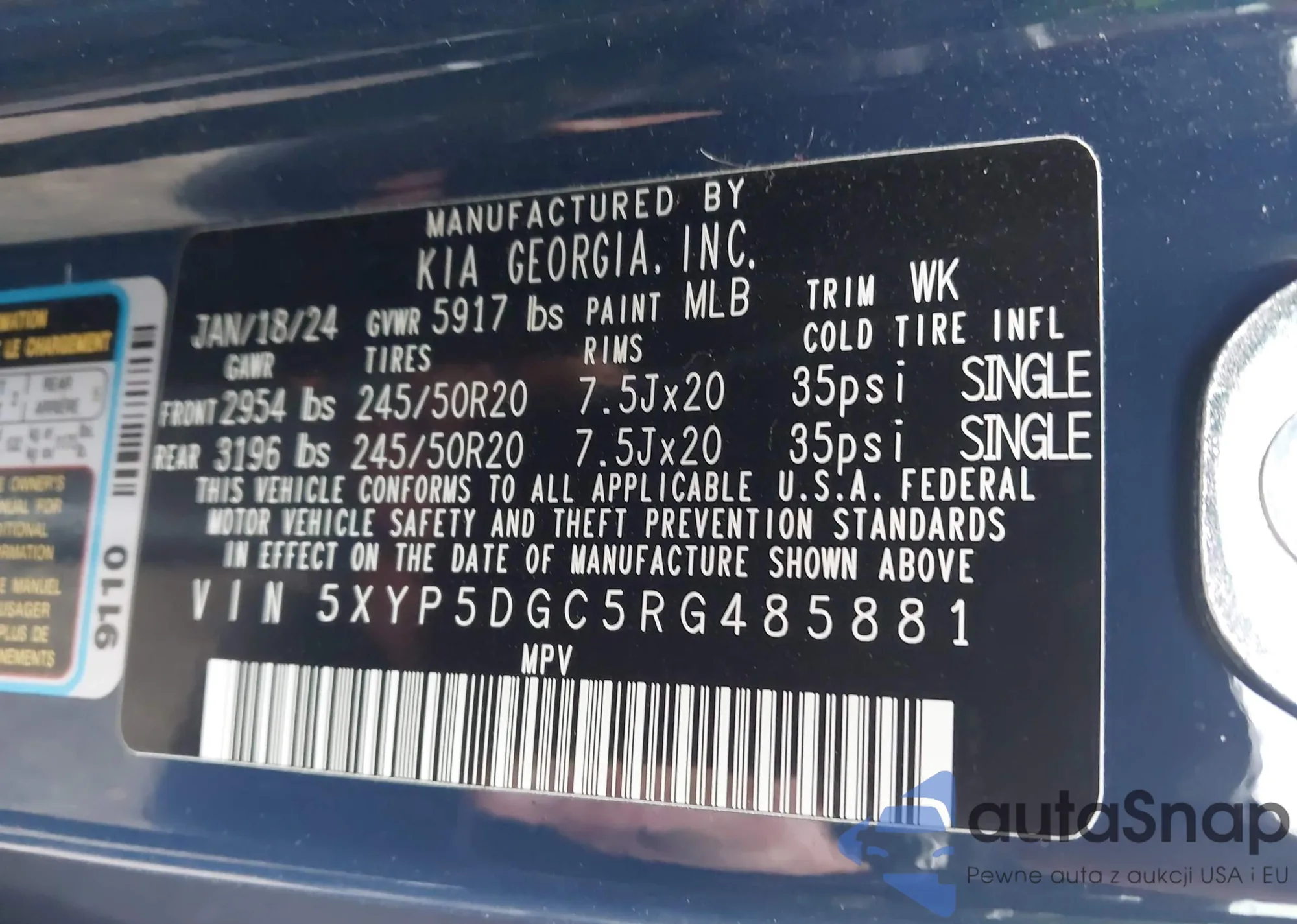 Автомобиль Kia Telluride 2024 (VIN 5XYP5DGC5RG485881) ранее не участвовал в торгах. Документы чистые, пробег соответствует или ниже среднего по рынку. Продаётся страховой компанией — рекомендуем покупку. Доставка в порт займет около 6–8 недель.