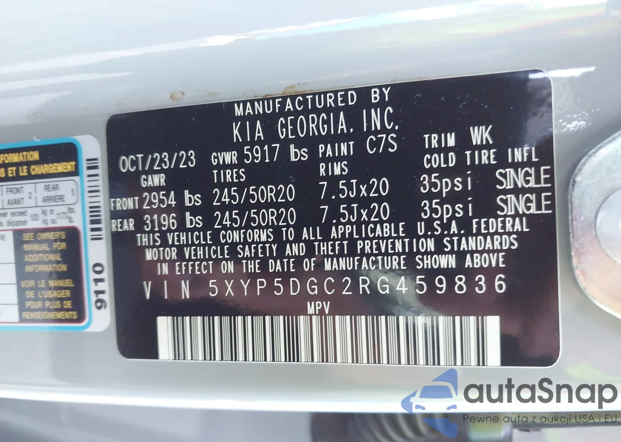 VIN: 5XYP5DGC2RG459836