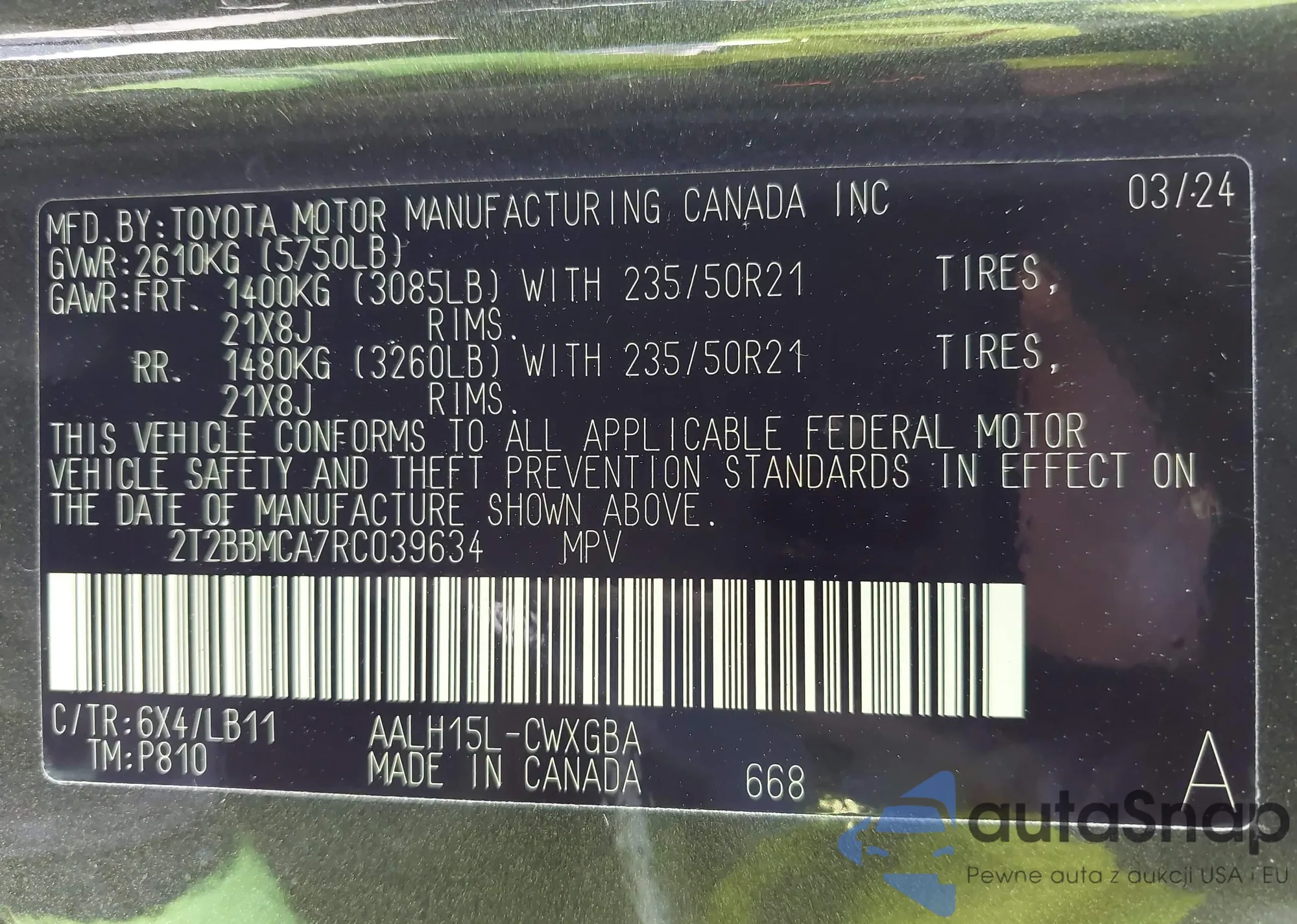 • VIN: 2T2BBMCA7RC039634