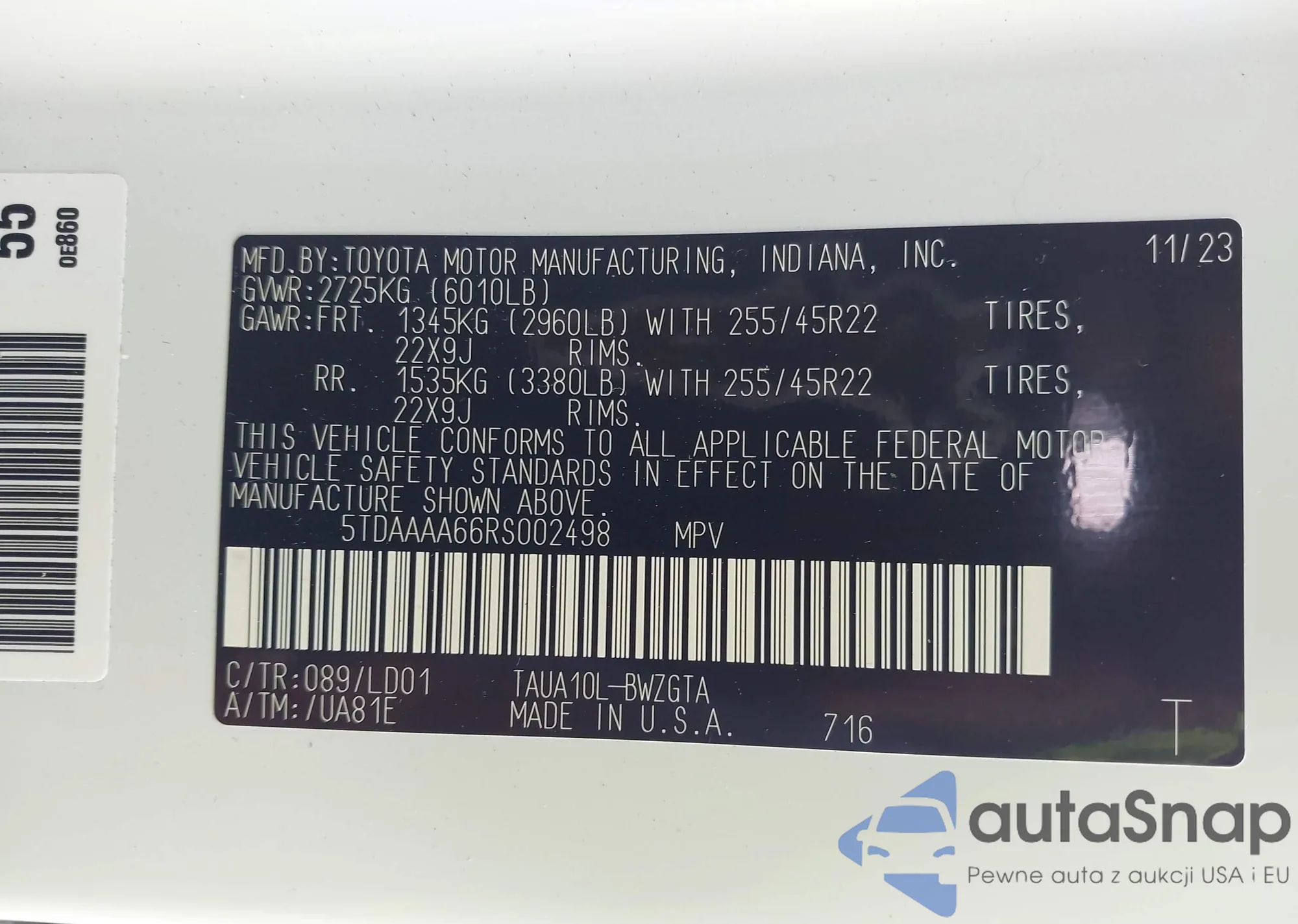 Автомобиль Lexus TX 2024 (VIN 5TDAAAA66RS002498) ранее не участвовал в торгах. Документы чистые, пробег соответствует или ниже среднего по рынку. Продаётся страховой компанией — рекомендуем покупку. Доставка в порт займет около 6–8 недель.