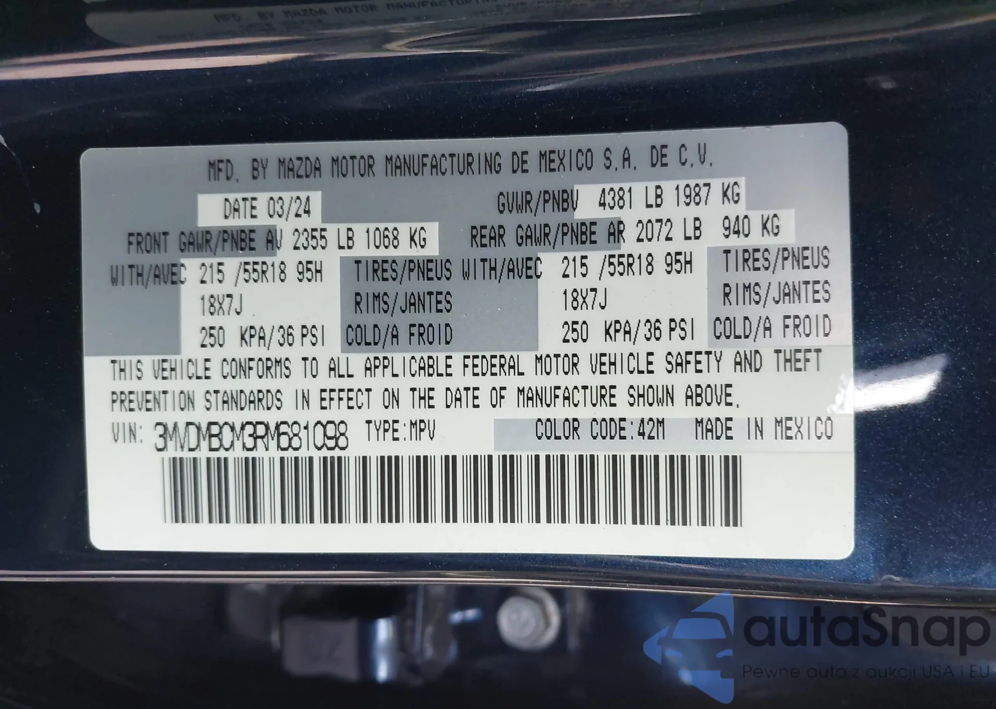 VIN: 3MVDMBCM3RM681098