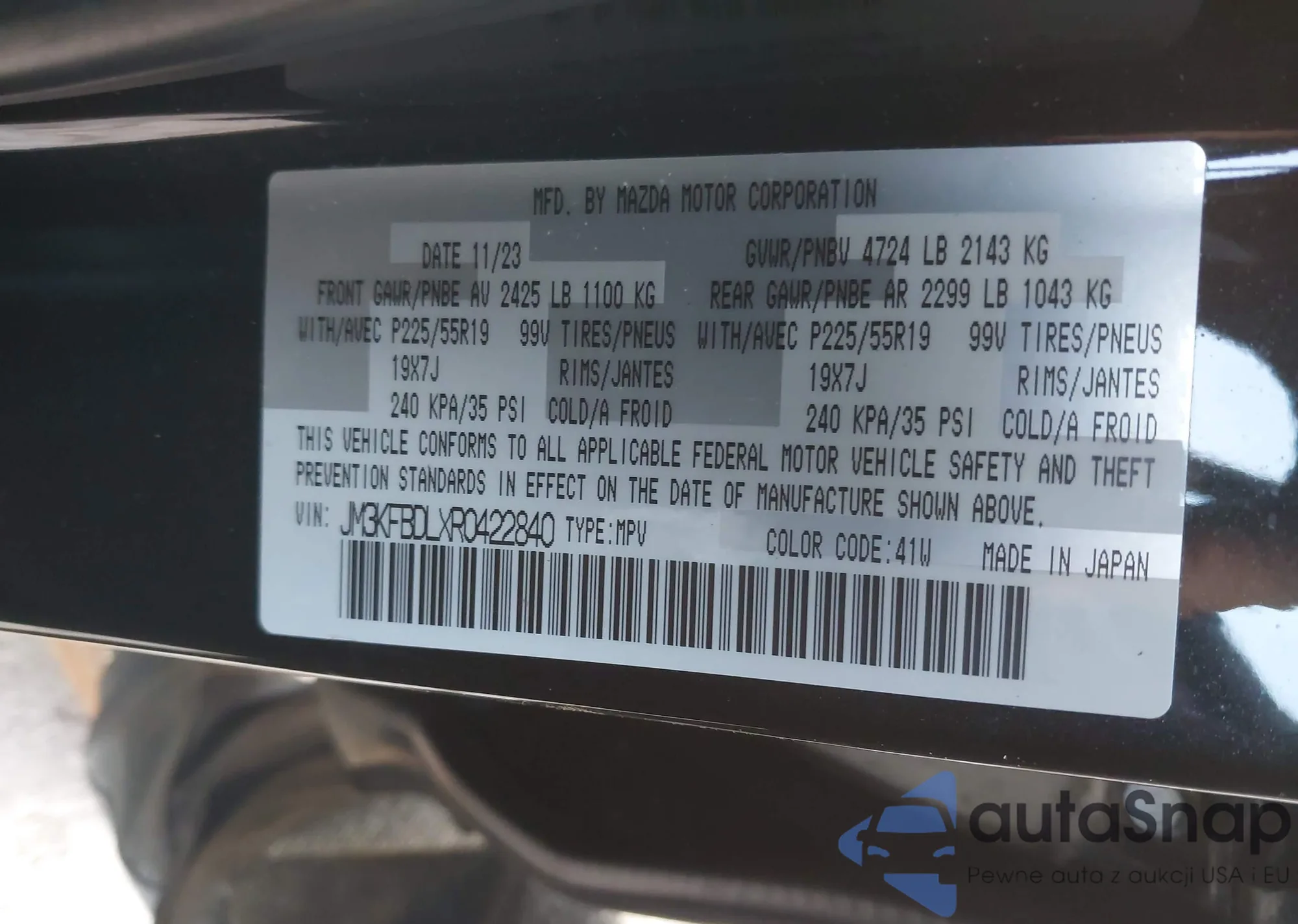Автомобиль Mazda CX-5 2024 (VIN JM3KFBDLXR0422840) ранее не участвовал в торгах. Документы чистые, пробег соответствует или ниже среднего по рынку. Продаётся страховой компанией — рекомендуем покупку. Доставка в порт займет около 6–8 недель.