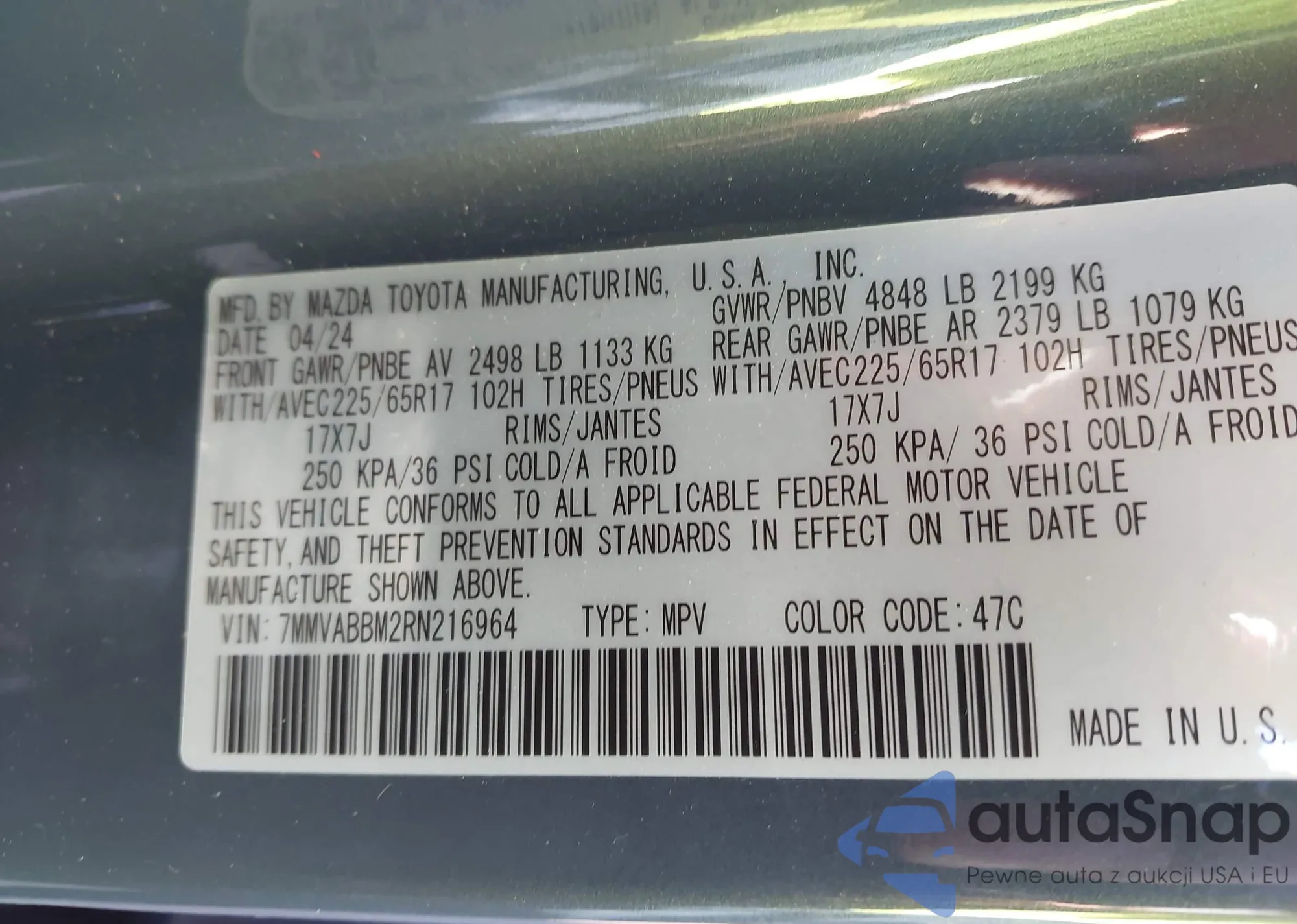 • VIN: 7MMVABBM2RN216964