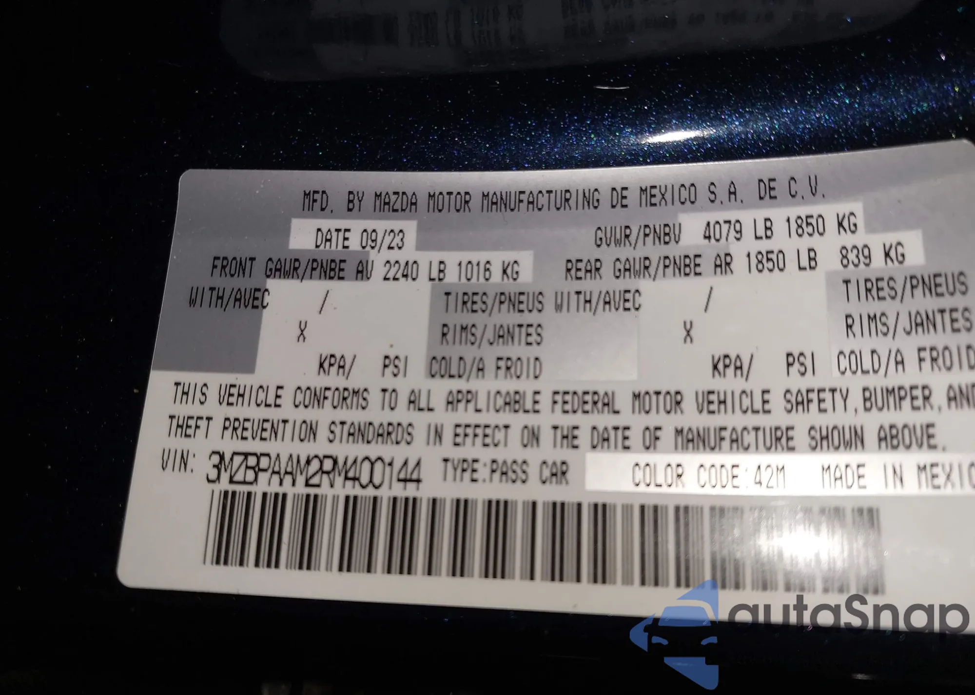 VIN: 3MZBPAAM2RM400144