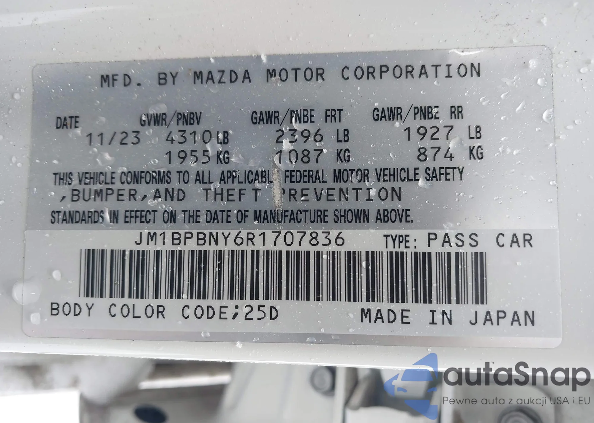 Автомобиль Mazda 3 2024 (VIN JM1BPBNY6R1707836) ранее не участвовал в торгах. Документы чистые, пробег соответствует или ниже среднего по рынку. Продаётся страховой компанией — рекомендуем покупку. Доставка в порт займет около 6–8 недель.