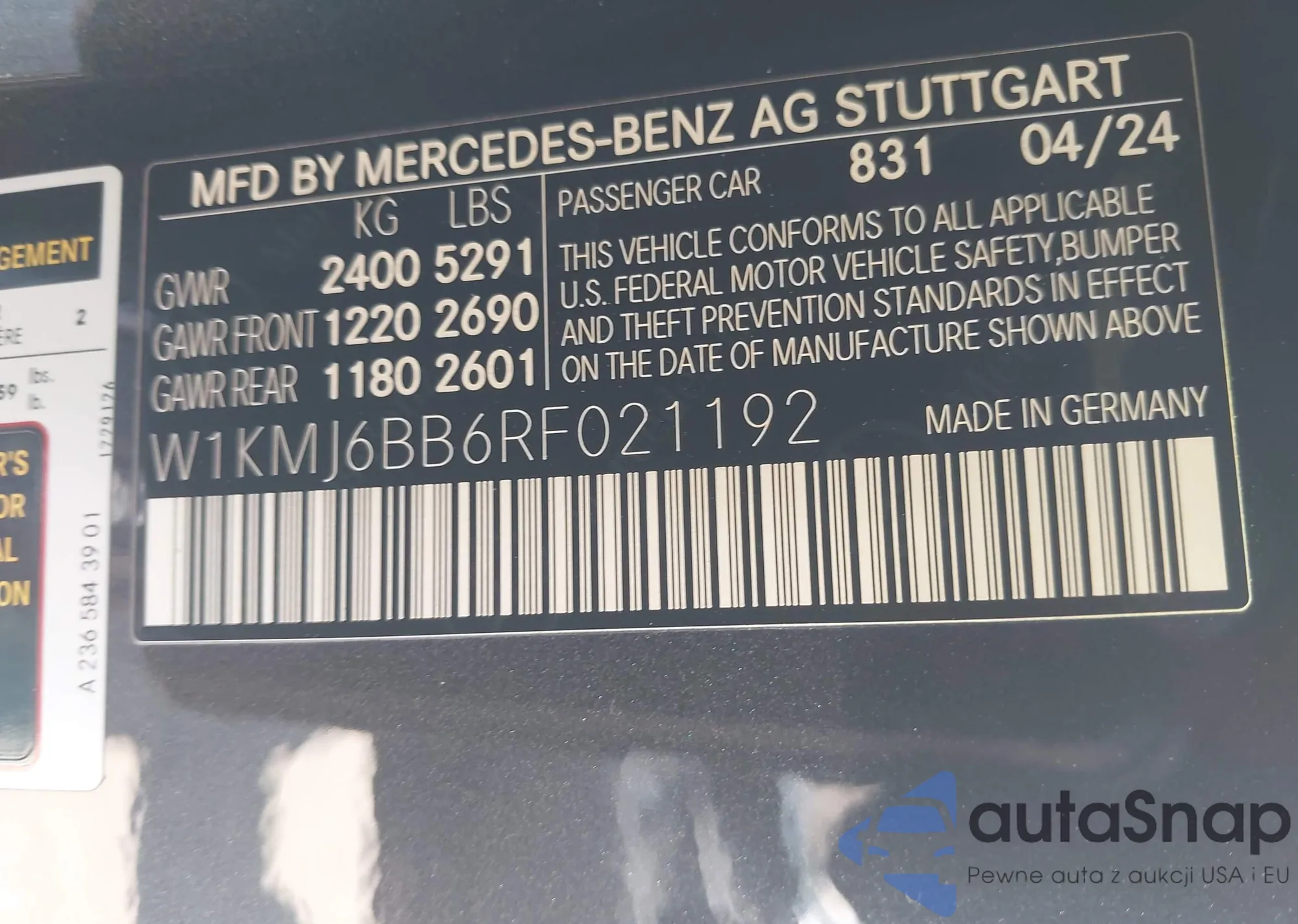 Автомобиль Mercedes-Benz CLE-klasse 2024 (VIN W1KMJ6BB6RF021192) продаётся непроверенным продавцом. Рекомендуем проверить отчет Carfax и подтвердить возможность регистрации перед покупкой.