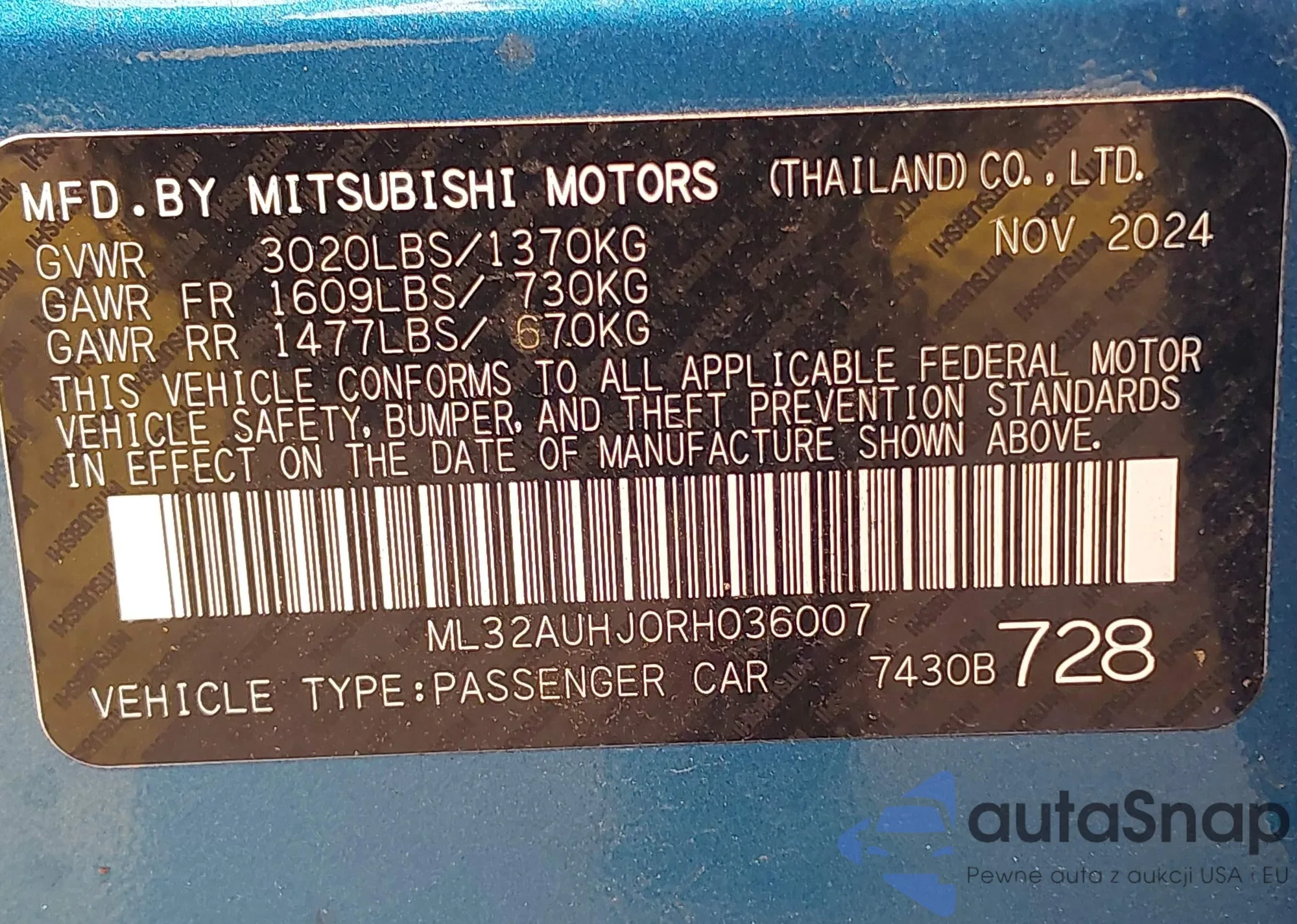 Автомобиль Mitsubishi Mirage 2024 (VIN ML32AUHJ0RH036007) имеет документы, препятствующие регистрации. Могут возникнуть сложности при экспорте и регистрации. Обратитесь к экспертам AutaSnap для поиска альтернатив.
