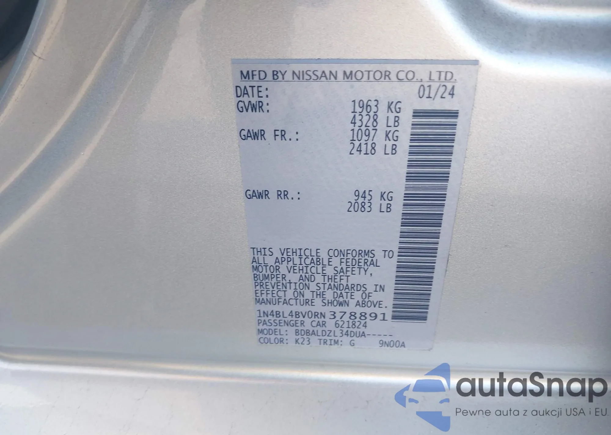 VIN: 1N4BL4BV0RN378891