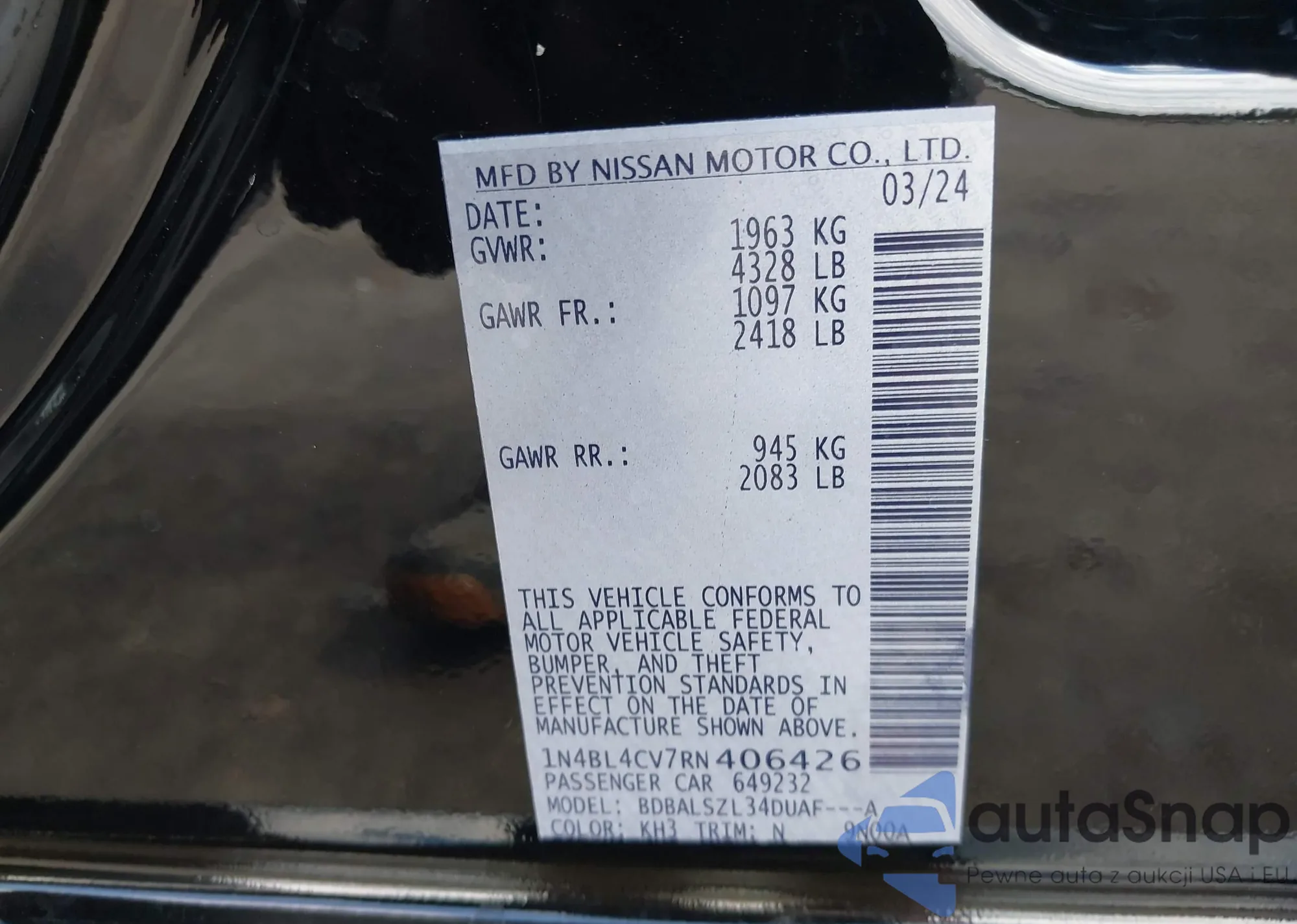 VIN: 1N4BL4CV7RN406426