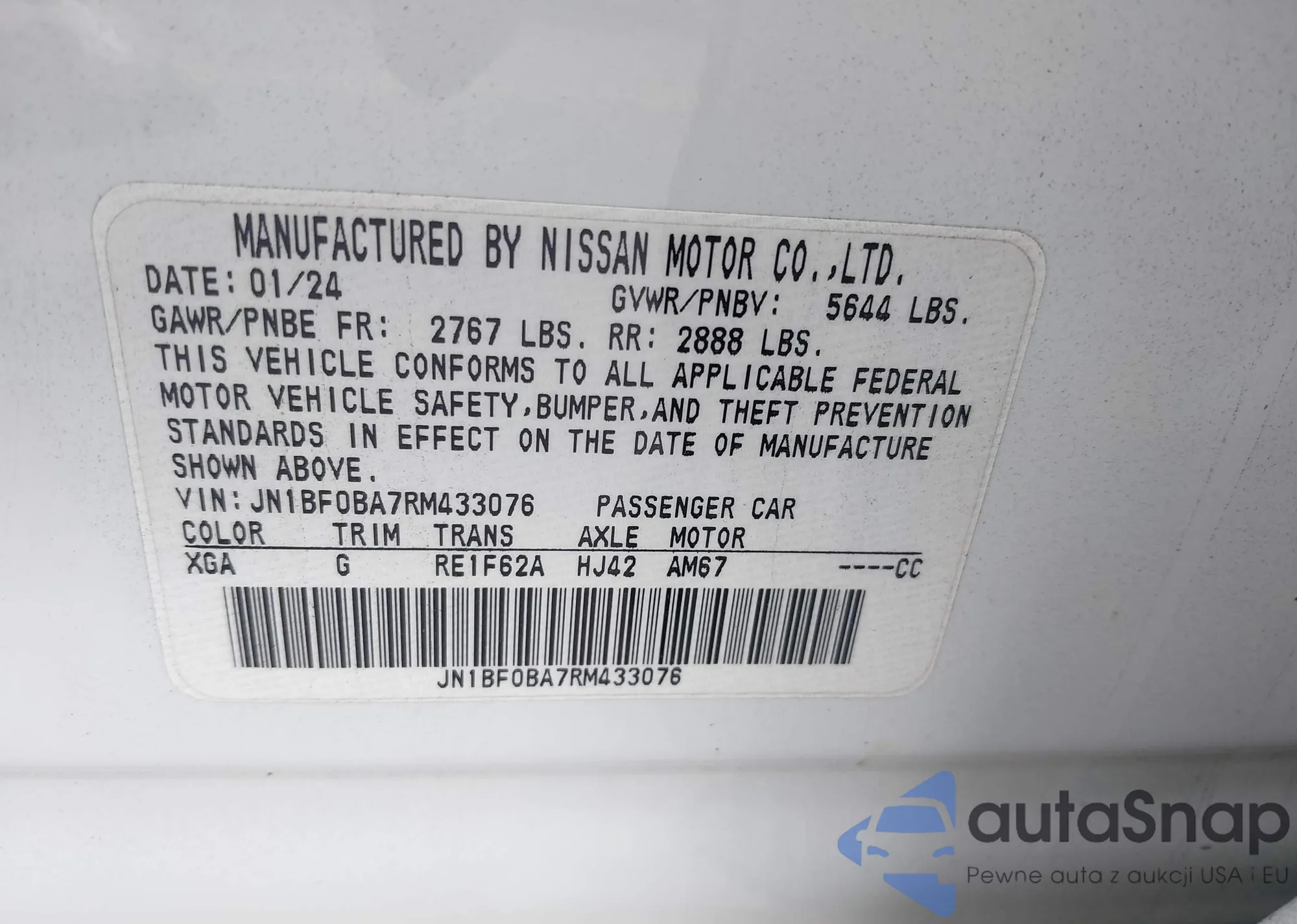 • VIN: JN1BF0BA7RM433076