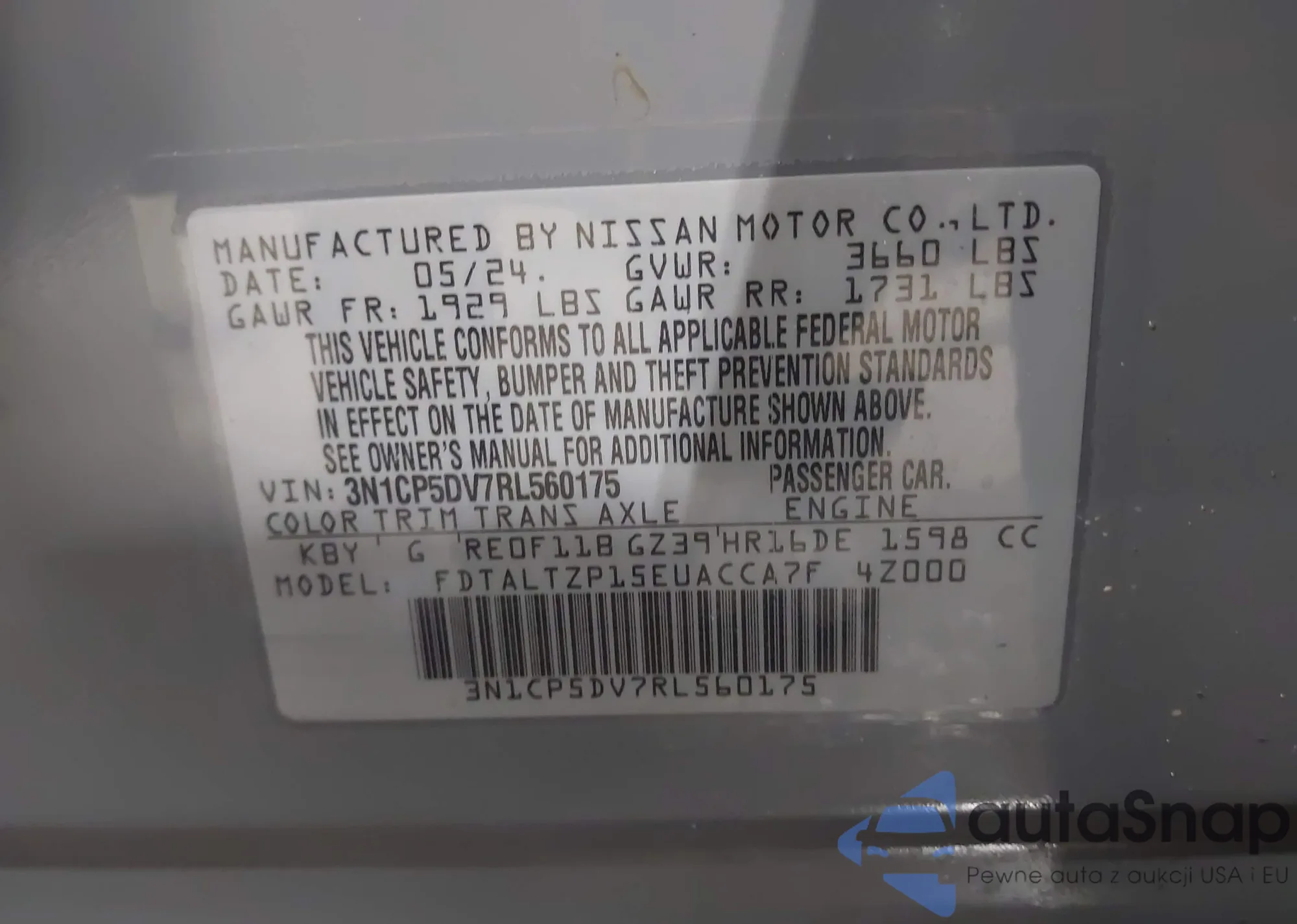 VIN: 3N1CP5DV7RL560175
