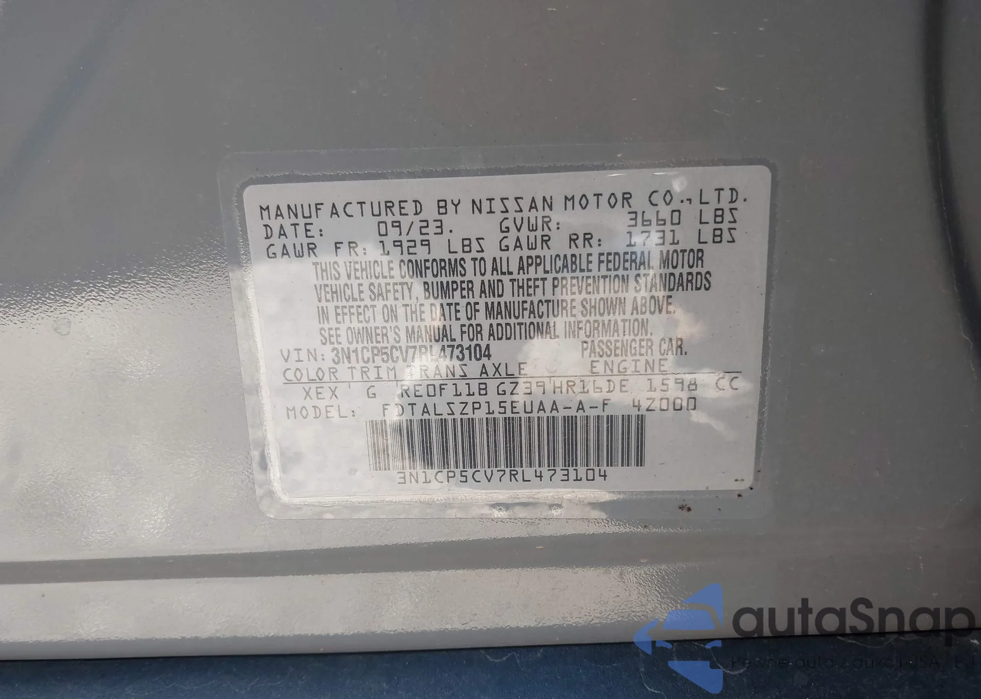 Автомобиль Nissan Kicks 2024 (VIN 3N1CP5CV7RL473104) ранее не участвовал в торгах. Документы чистые, пробег соответствует или ниже среднего по рынку. Продаётся страховой компанией — рекомендуем покупку. Доставка в порт займет около 6–8 недель.