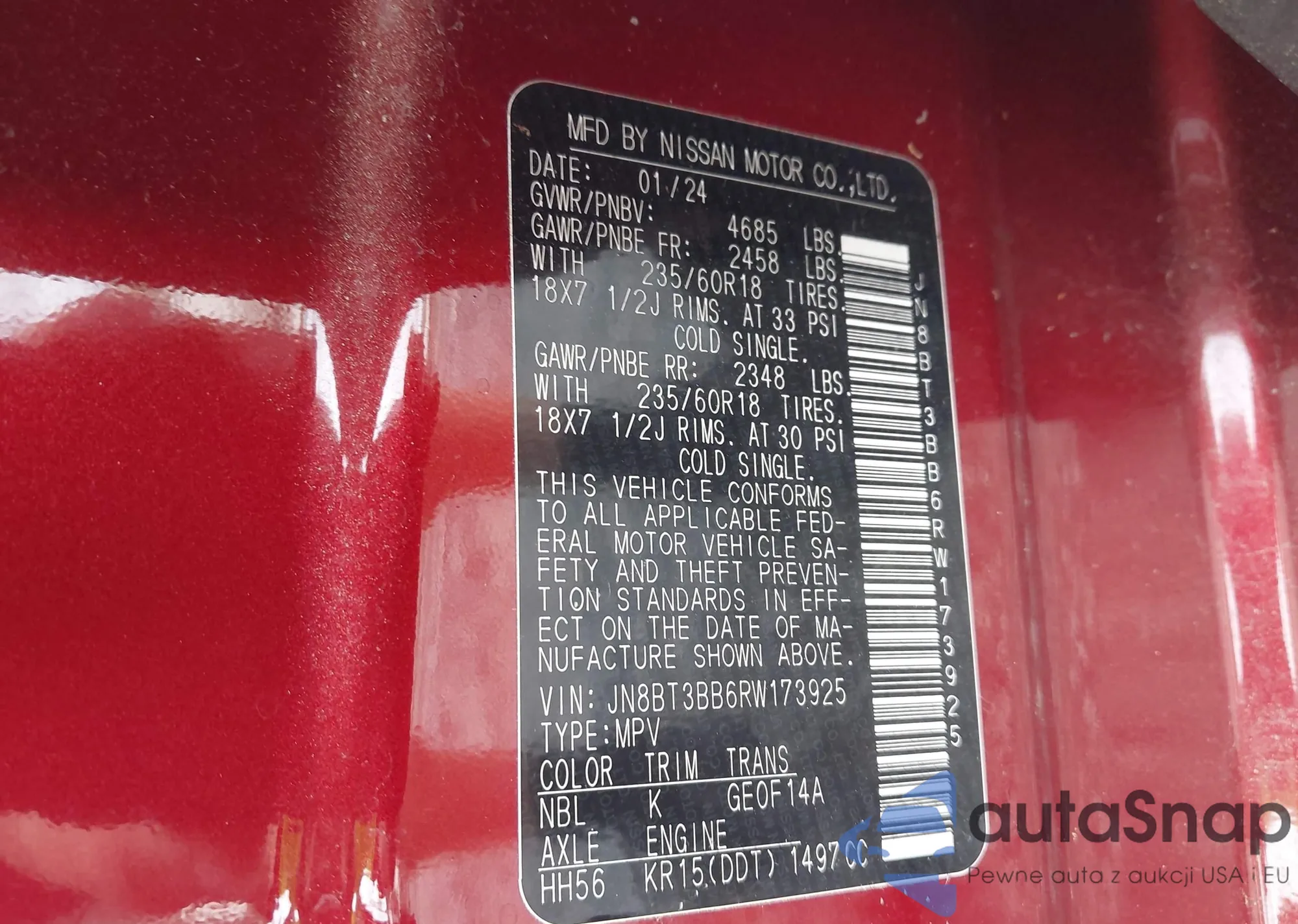 VIN: JN8BT3BB6RW173925