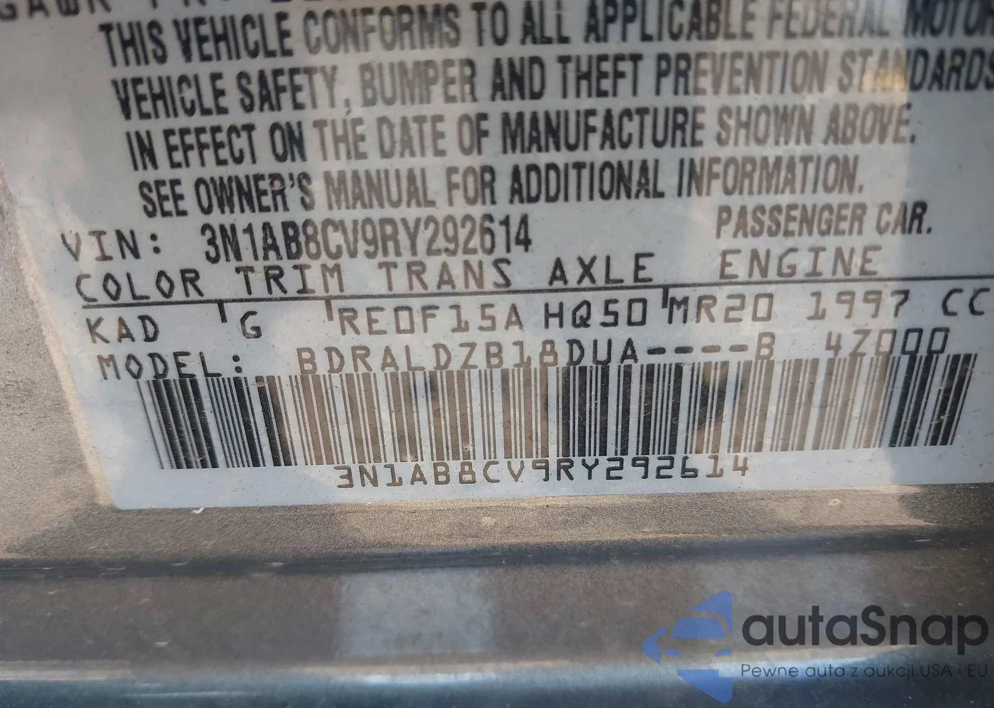 VIN: 3N1AB8CV9RY292614