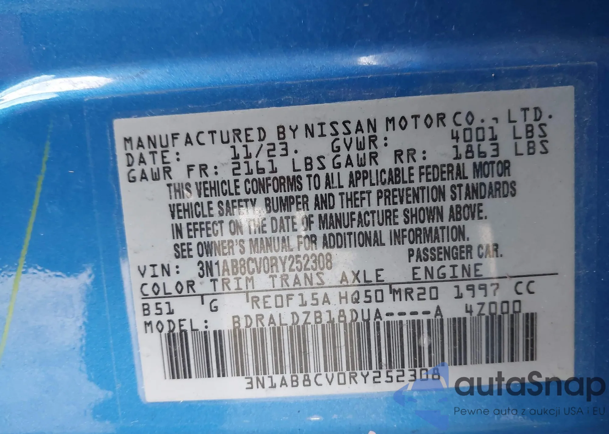 VIN: 3N1AB8CV0RY252308