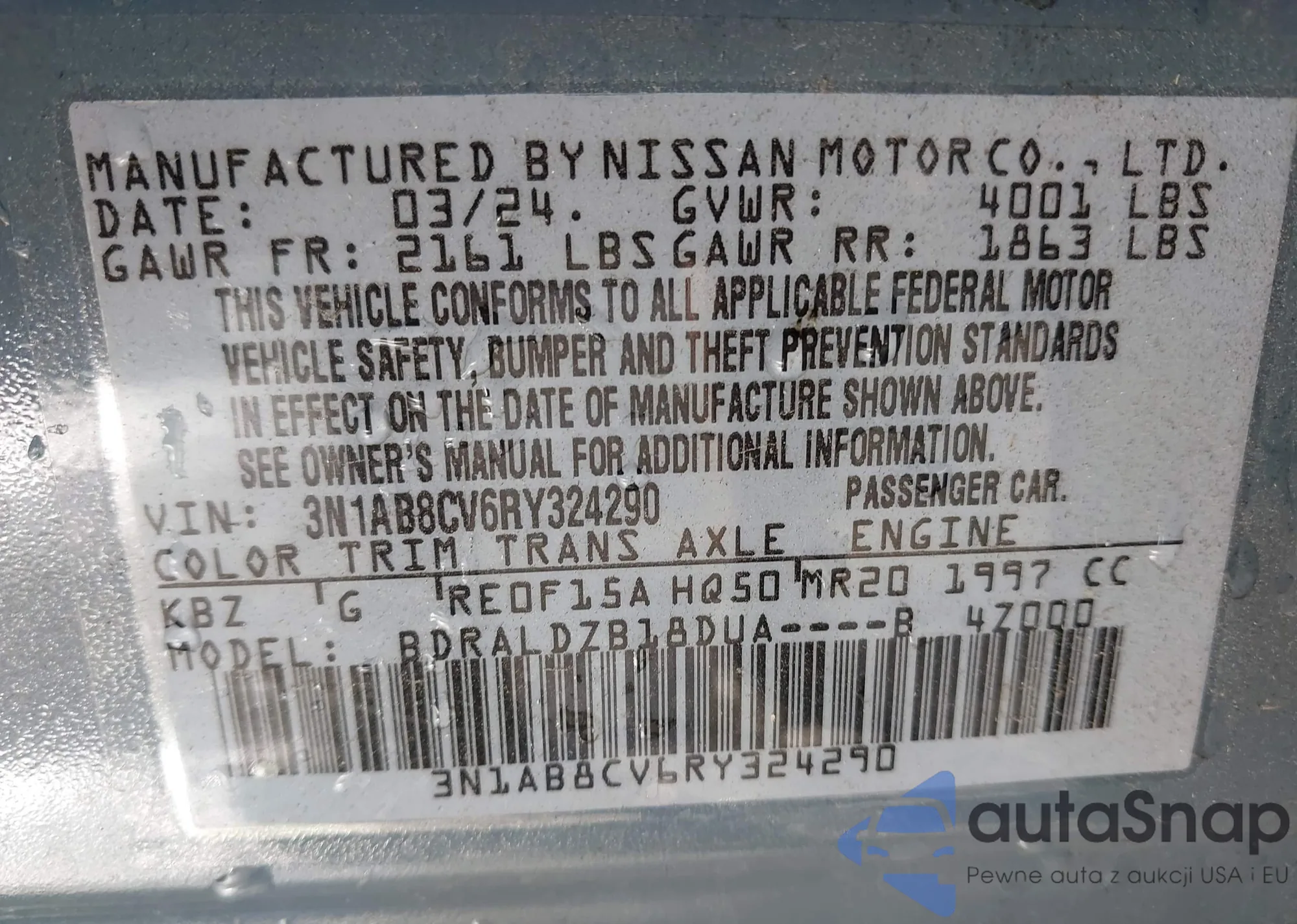 VIN: 3N1AB8CV6RY324290