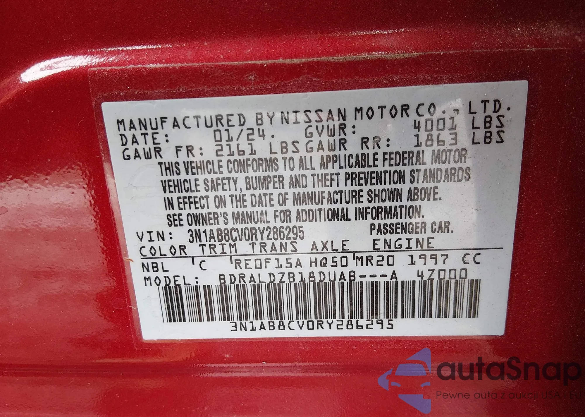 VIN: 3N1AB8CV0RY286295