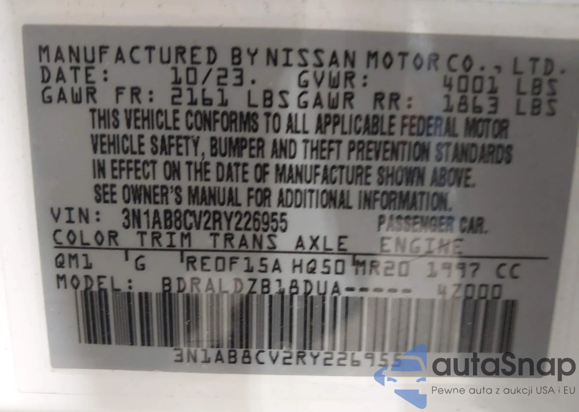 VIN: 3N1AB8CV2RY226955