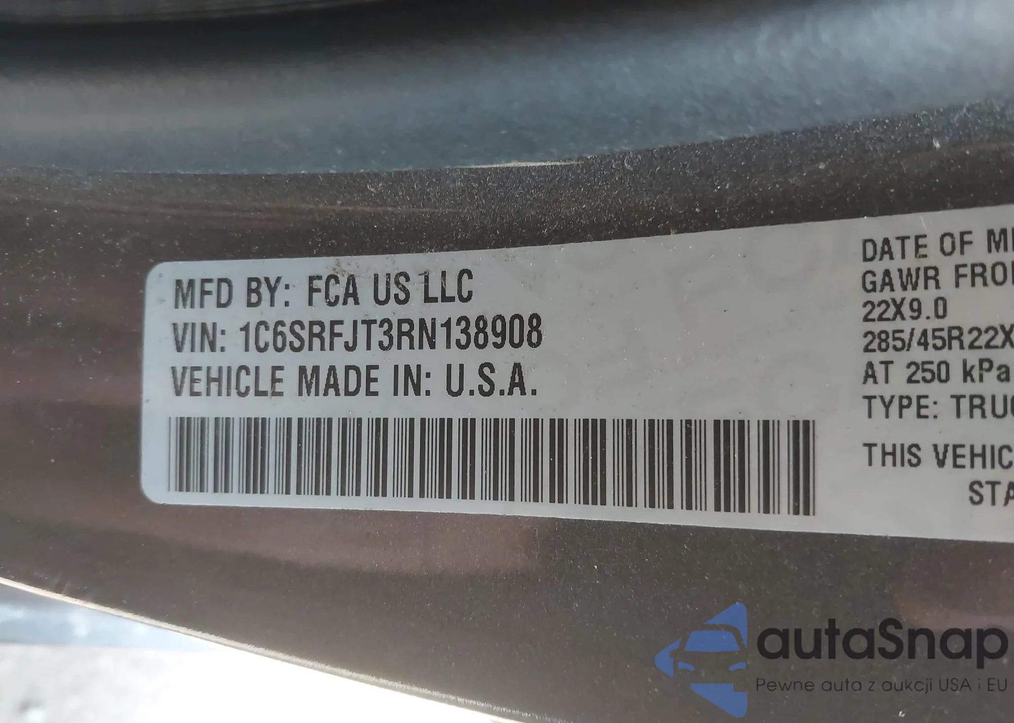 VIN: 1C6SRFJT3RN138908