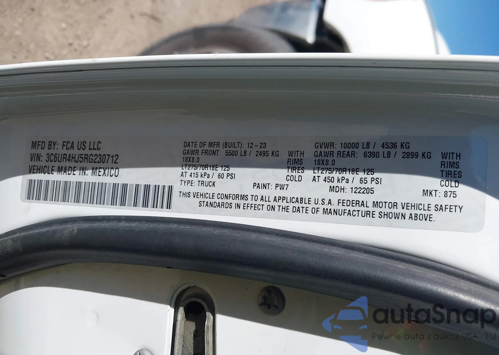 VIN: 3C6UR4HJ5RG230712