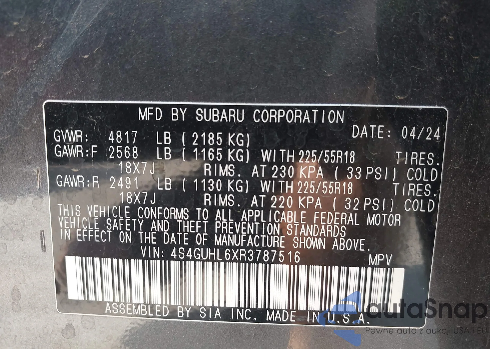 VIN: 4S4GUHL6XR3787516