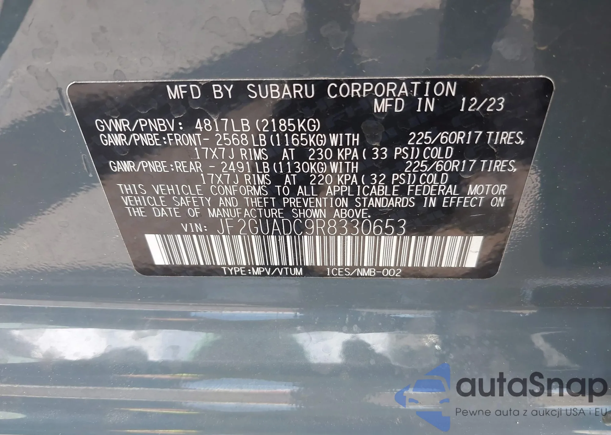 VIN: JF2GUADC9R8330653