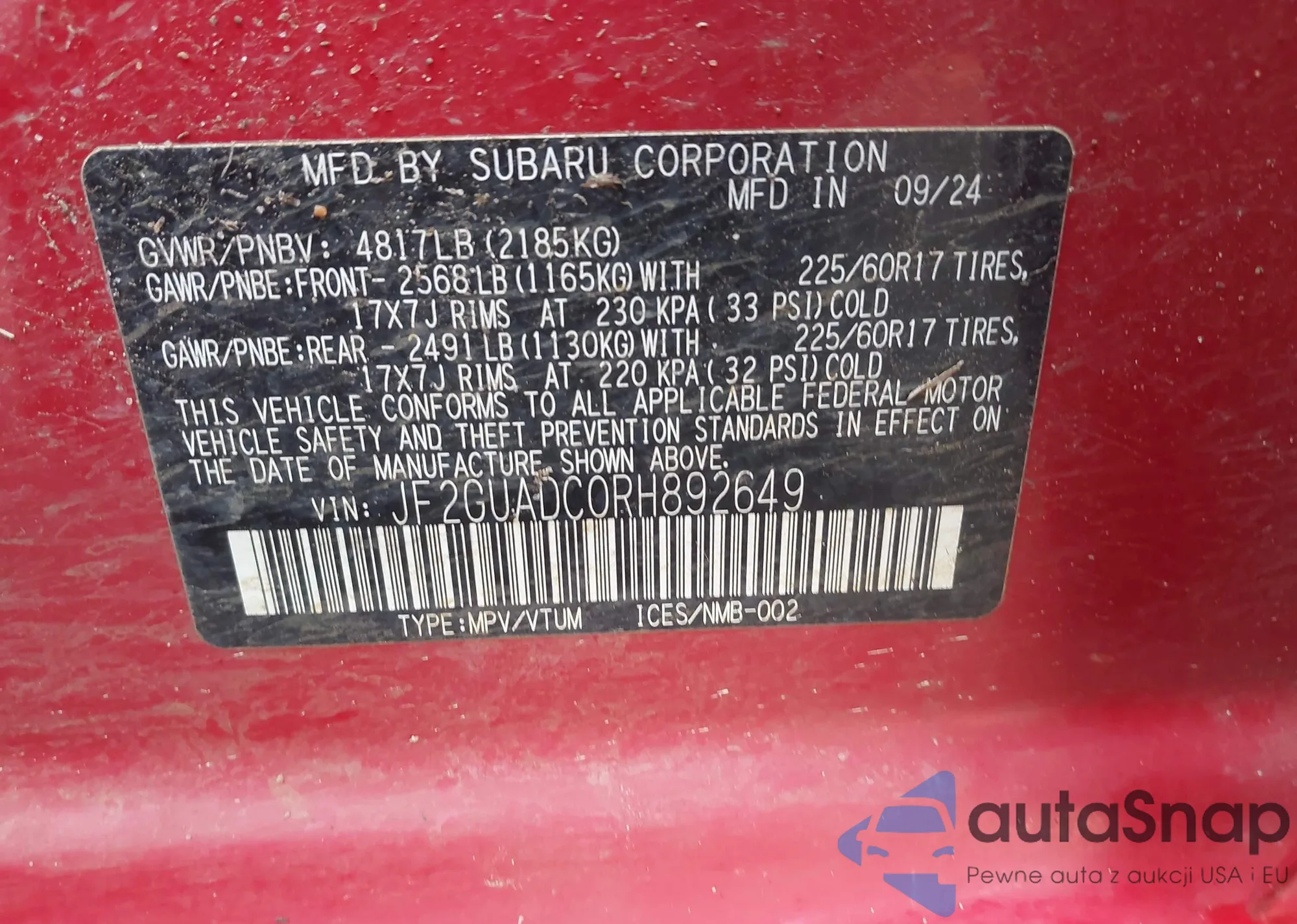 VIN: JF2GUADC0RH892649