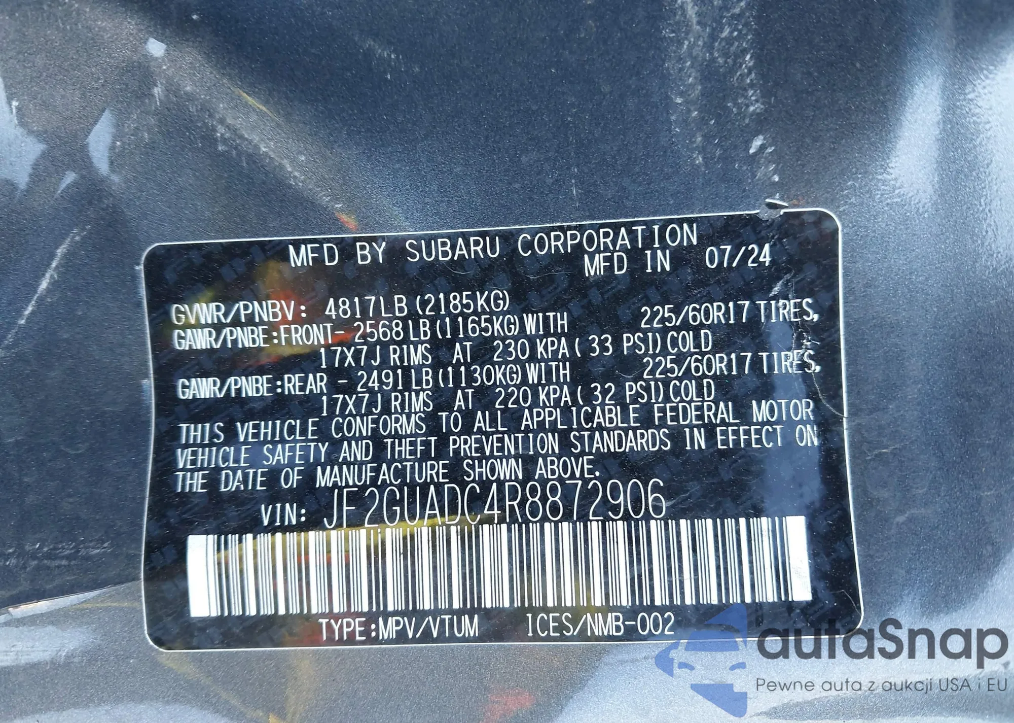 VIN: JF2GUADC4R8872906