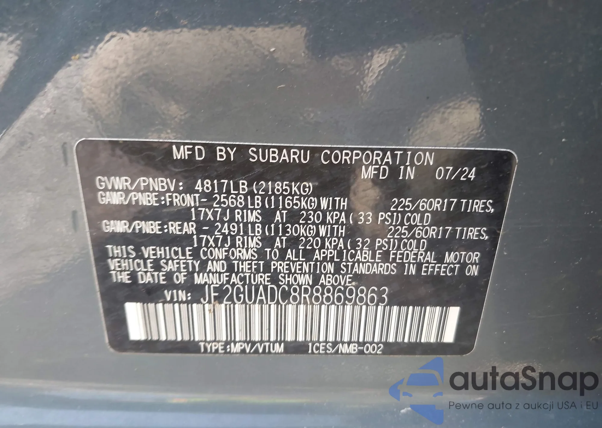 VIN: JF2GUADC8R8869863