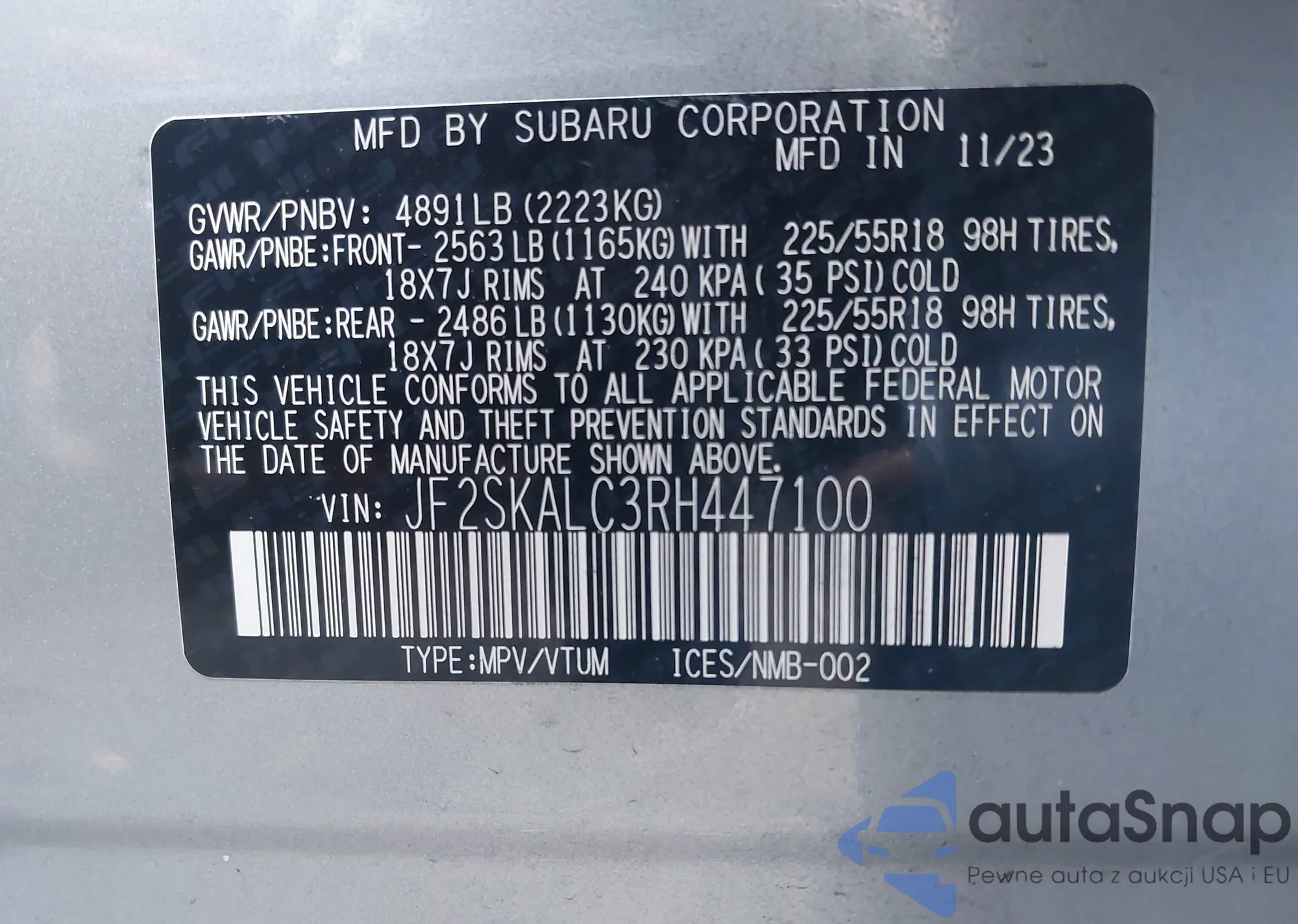 Автомобиль Subaru Forester 2024 (VIN JF2SKALC3RH447100) ранее не участвовал в торгах. Документы чистые, пробег соответствует или ниже среднего по рынку. Продаётся страховой компанией — рекомендуем покупку. Доставка в порт займет около 6–8 недель.