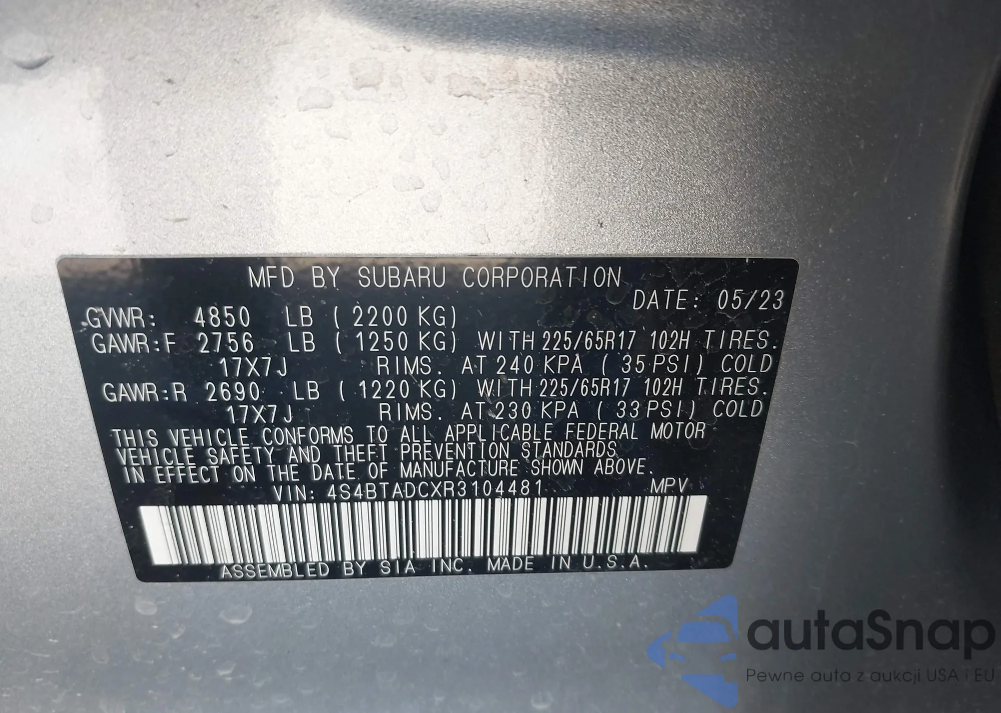 VIN: 4S4BTADCXR3104481