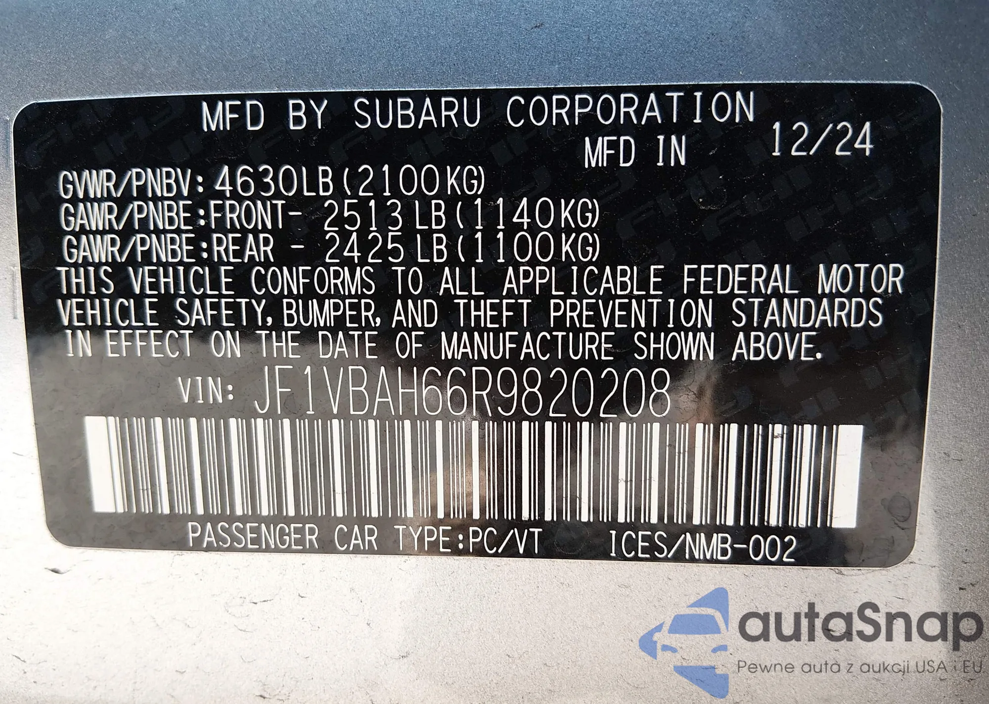 • VIN: JF1VBAH66R9820208