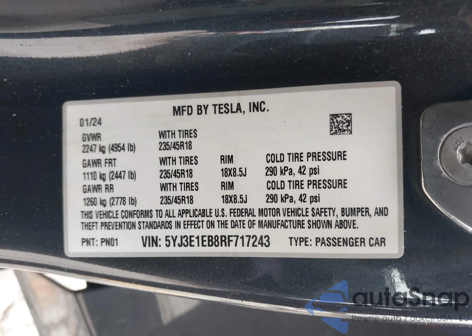VIN: 5YJ3E1EB8RF717243