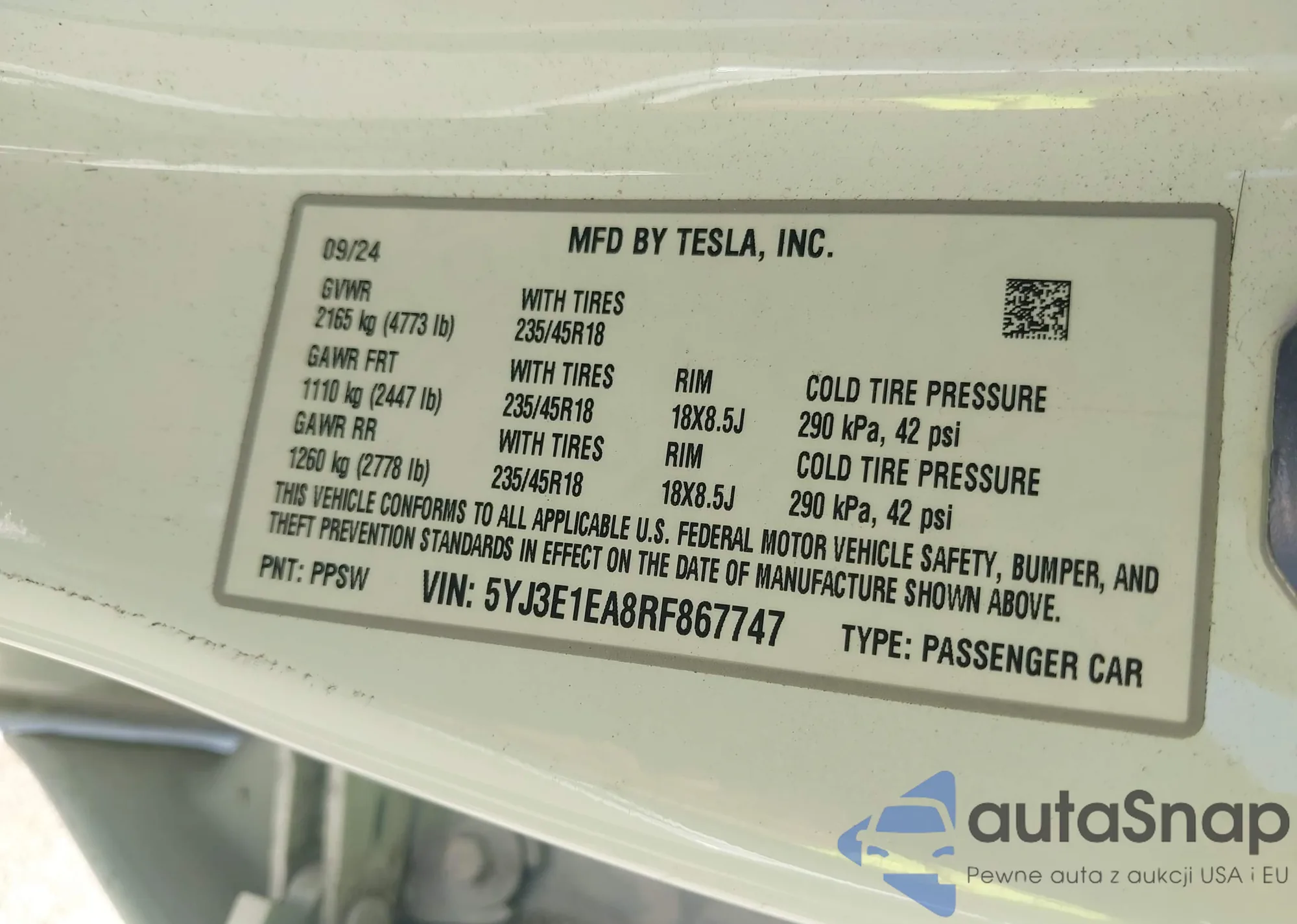 VIN: 5YJ3E1EA8RF867747