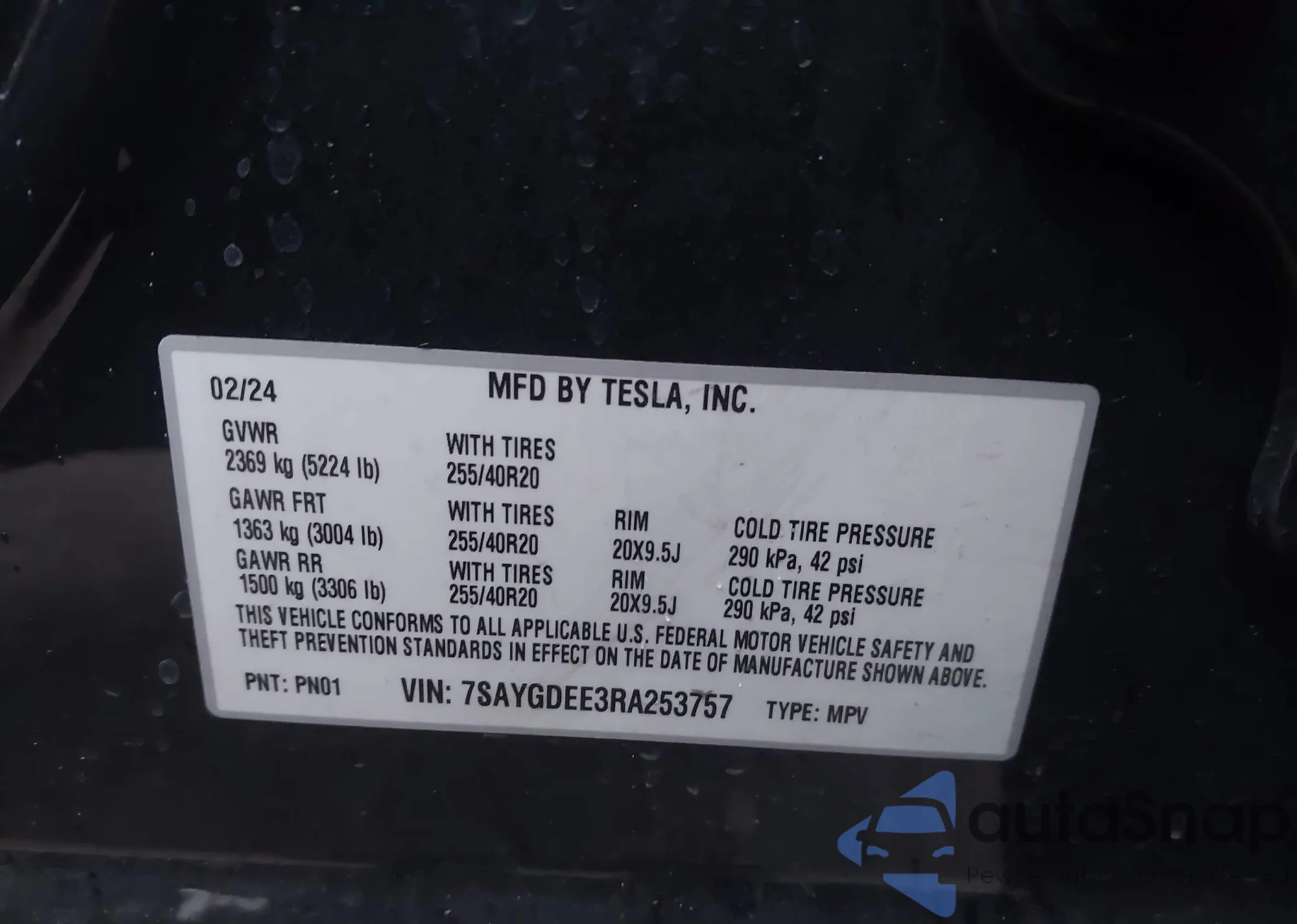VIN: 7SAYGDEE3RA253757